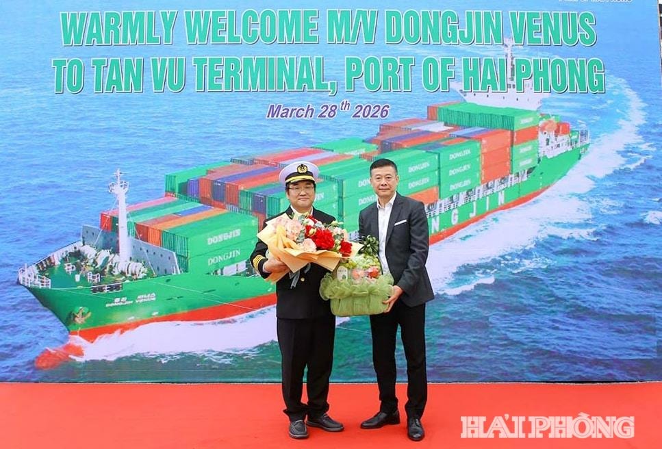 Sáng 28/3, tại Chi nhánh Cảng Tân Vũ (Công ty CP Cảng Hải Phòng), tàu Dongjin Venus của hãng tàu Dongjin Shipping đã cập cảng, chính thức khai trương tuyến dịch vụ hàng hải kết nối Hải Phòng với khu vực Đông Bắc Á.