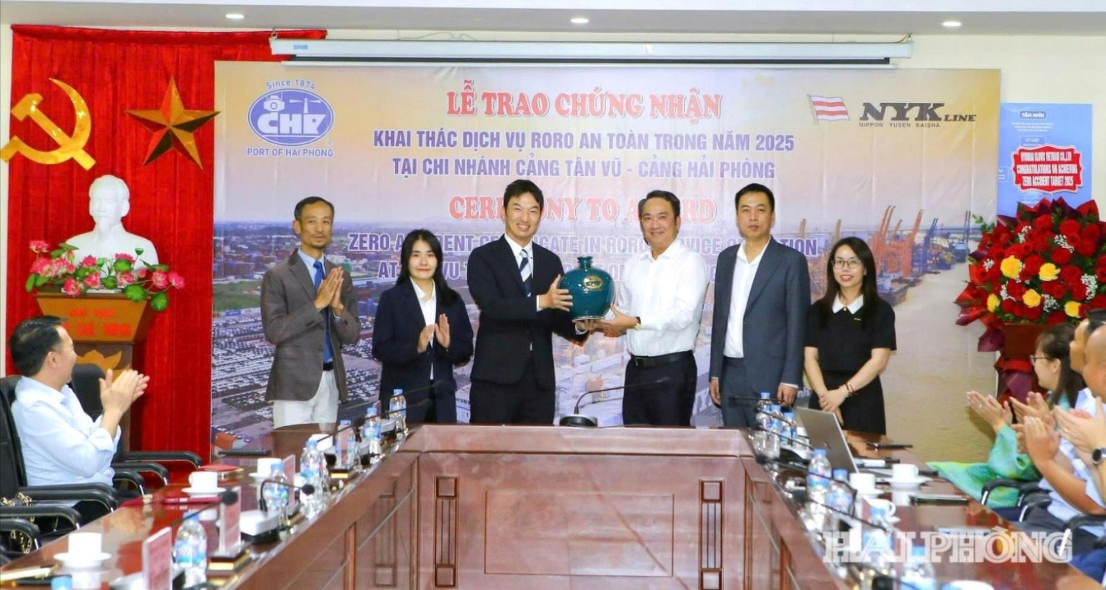 Trước đó, vào ngày 27/3, Chi nhánh Cảng Tân Vũ tổ chức lễ trao chứng nhận “Zero Accident 2025” do hãng tàu NYK Line trao tặng. Đây là giải thưởng quan trọng, ghi nhận mức độ an toàn tuyệt đối, đặc biệt là không để xảy ra bất kỳ hư hại nào đối với hàng hóa trong suốt quá trình xếp dỡ khai thác tàu RORO.