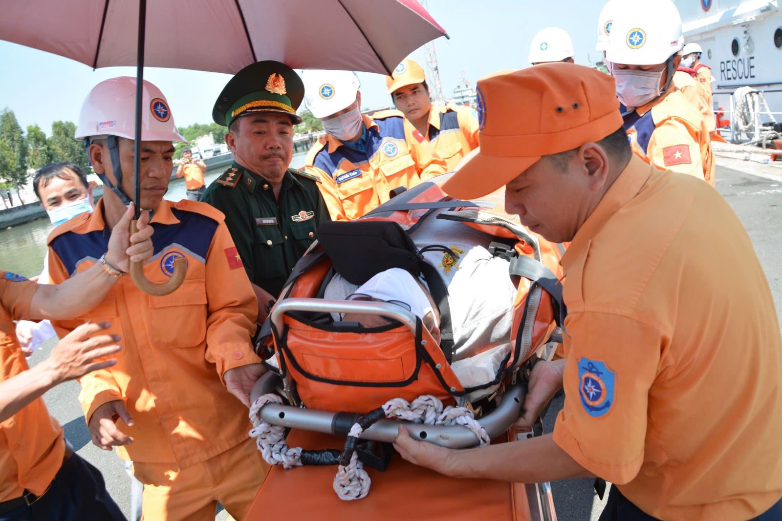 Trong suốt hành trình đưa bệnh nhân vào bờ, đội ngũ y tế đi cùng đã duy trì các biện pháp sơ cứu, theo dõi chặt chẽ tình trạng của bệnh nhân.