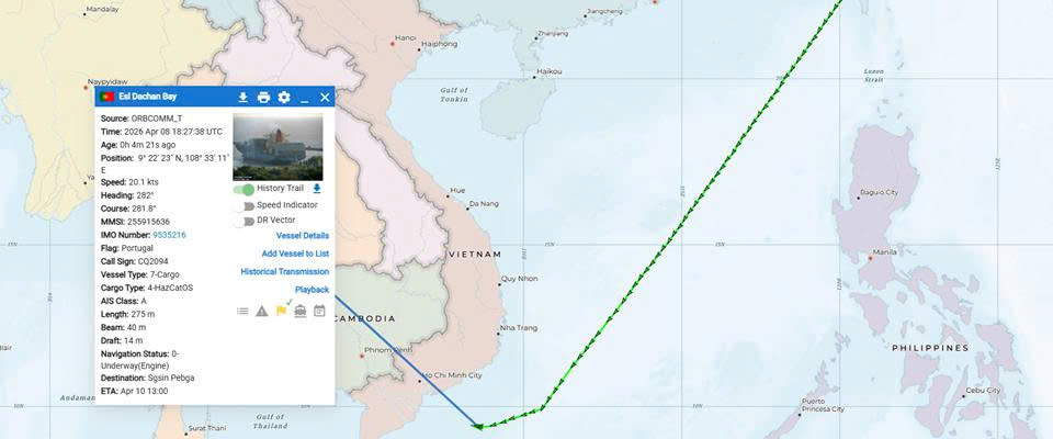 Hồi 20 giờ 40 ngày 08/4/2026, Trung tâm đã tiếp nhận thông tin từ tàu Container ESL DACHAN BAY quốc tịch Bồ Đào Nha và đại diện chủ tàu (Công ty TNHH TM và logistics Thái Bình Dương) về việc một thuyền viên trên tàu gặp tình trạng sức khỏe nguy hiểm trong khi tàu đang hành trình từ Đài Loan đi Singapore.
