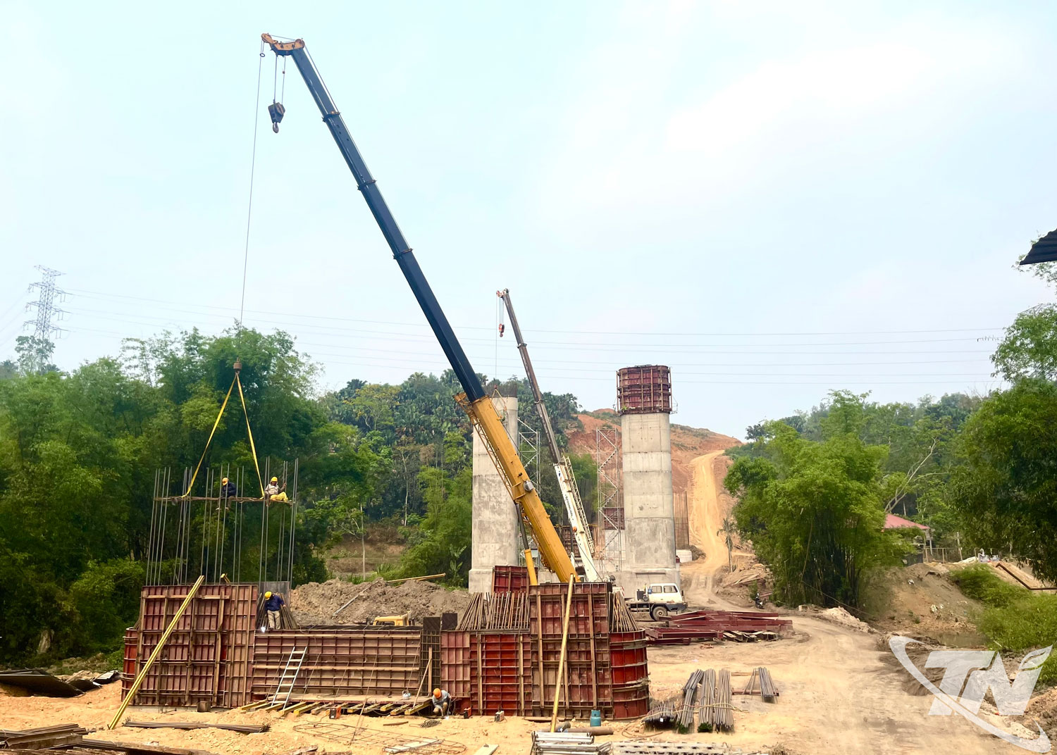 Trong tổng thể Dự án, nhiều hạng mục cầu quy mô lớn và kỹ thuật phức tạp đang được ưu tiên đẩy nhanh tiến độ. Tiêu biểu như cầu Thanh Bình dài 400m và cầu Khuổi Quận dài 300m, giữ vai trò quan trọng trong kết nối toàn tuyến. Tại các vị trí này, nhà thầu bố trí nhiều mũi thi công song song, tranh thủ thời tiết thuận lợi để triển khai đồng thời các hạng mục nền móng, thân trụ và dầm cầu.