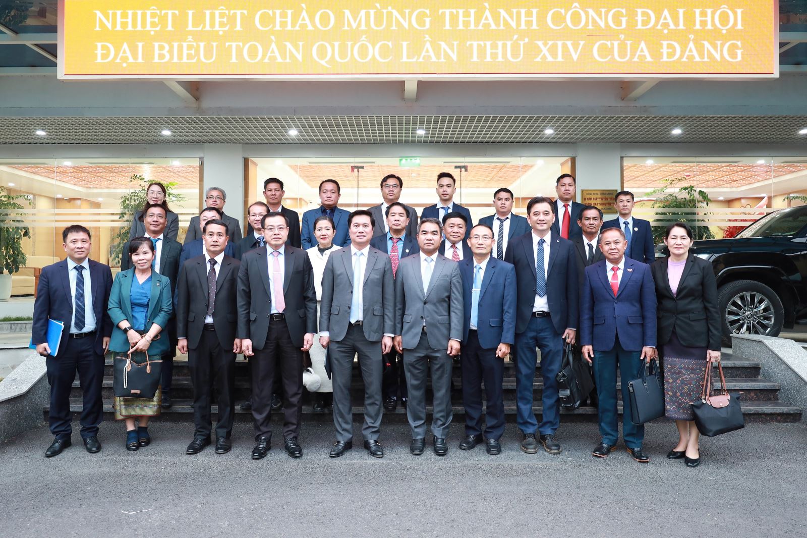 Thứ trưởng Nguyễn Tường Văn, Thứ trưởng Detsongkham Thammavong và các đại biểu chụp ảnh lưu niệm sau khi kết thúc buổi làm việc