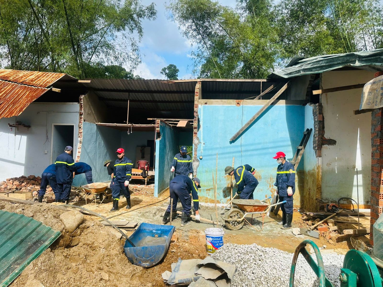 Các lực lượng thần tốc xây dựng lại, sửa chữa nhà ở cho các gia đình có nhà bị thiệt hại do thiên tai tại các tỉnh miền Trung.