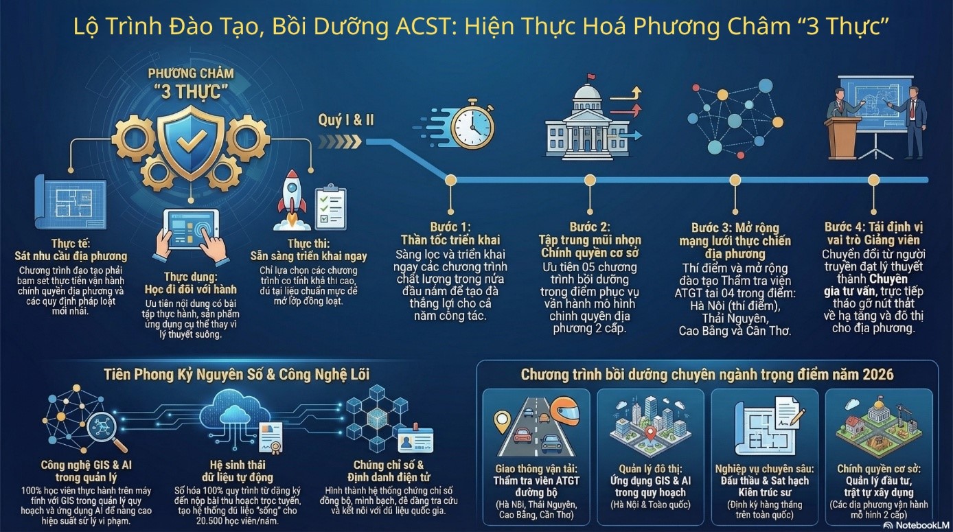 Infographic: Lộ trình đào tạo, bồi dưỡng năm 2026 của Học viện ACST - Hành động quyết liệt hiện thực hóa phương châm "3 Thực" quán triệt theo tinh thần của Giám đốc Học viện