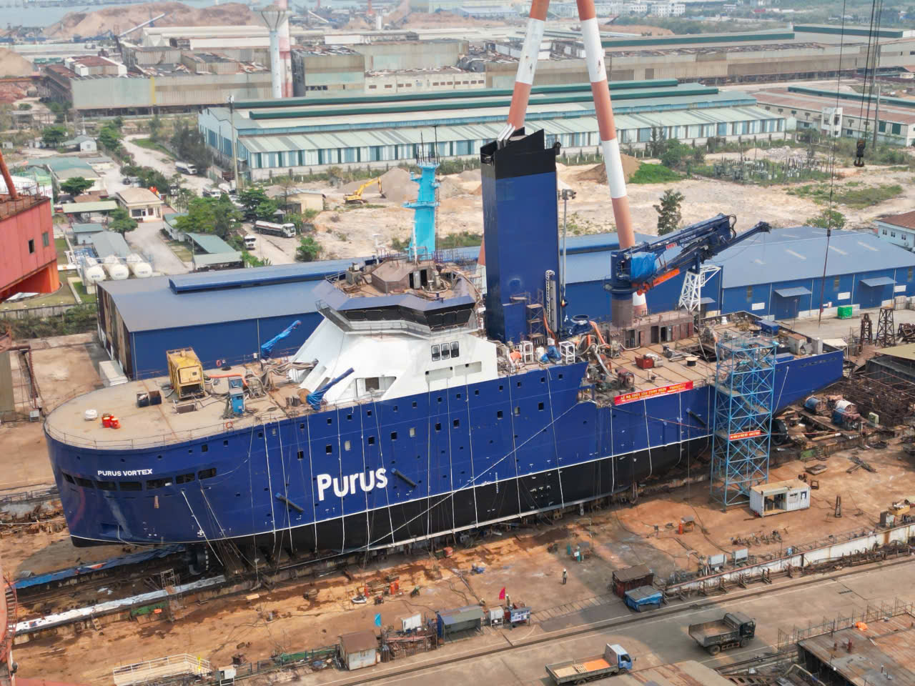 Đây là tàu dịch vụ điện gió thứ 6 được doanh nghiệp hạ thủy và là sản phẩm đầu tiên đóng cho chủ tàu Purus - đối tác hoạt động trong lĩnh vực năng lượng tái tạo.