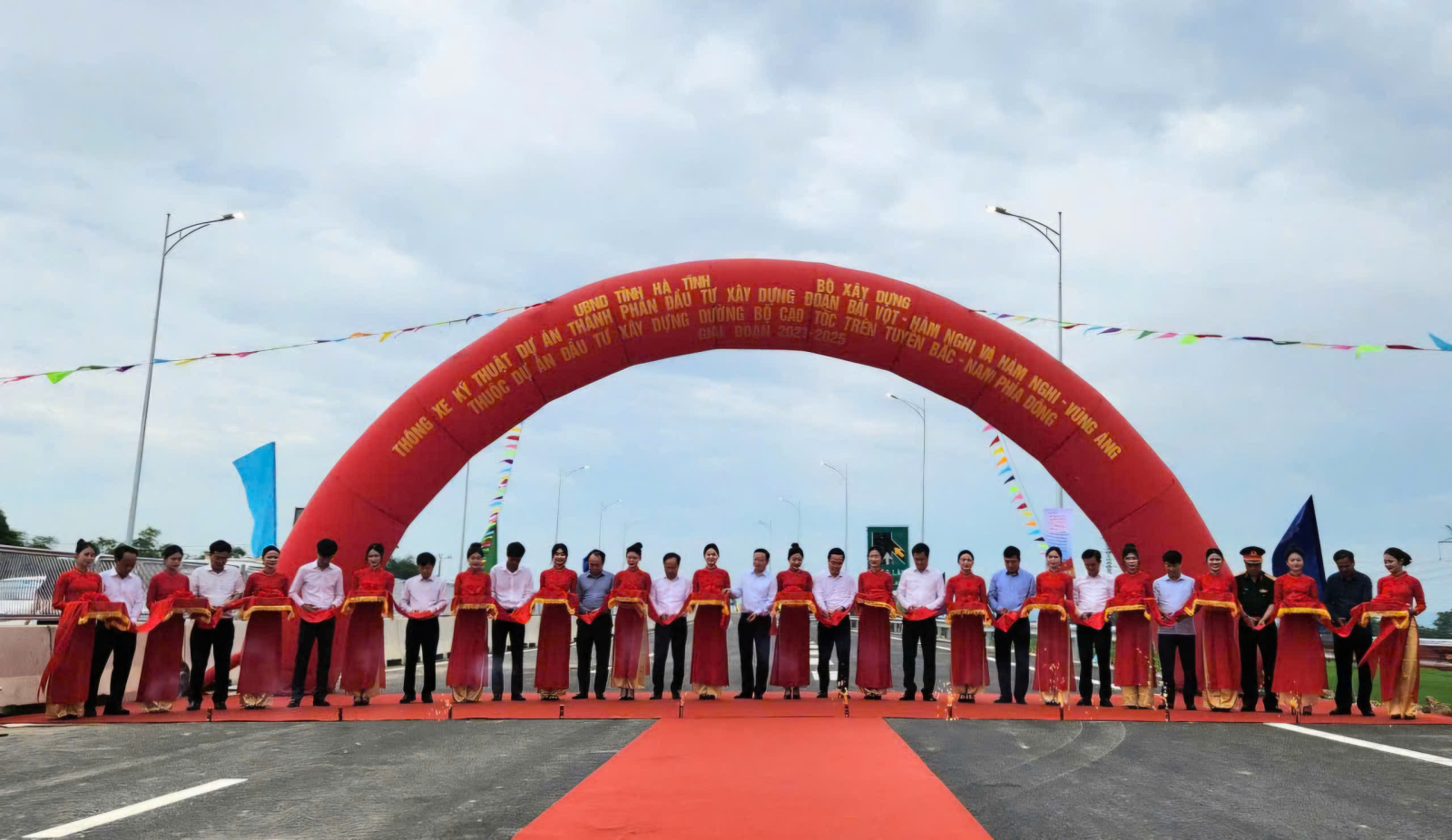Phó Thủ tướng Trần Hồng Hà cùng lãnh đạo các bộ, ngành cắt băng thông xe 2 tuyến cao tốc Bãi Vọt - Hàm Nghi và Hàm Nghi - Vũng Áng