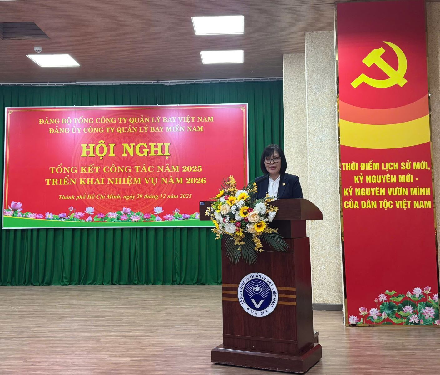 Đảng bộ Công ty Quản lý bay miền Nam vừa tổ chức Hội nghị tổng kết công tác đảng năm 2025 và triển khai nhiệm vụ năm 2026 tại trụ sở Công ty. Tham dự và chỉ đạo Hội nghị có đồng chí Lê Bích Hòa, Phó Bí thư Đảng ủy Tổng công ty Quản lý bay Việt Nam dự và chỉ đạo Hội nghị.