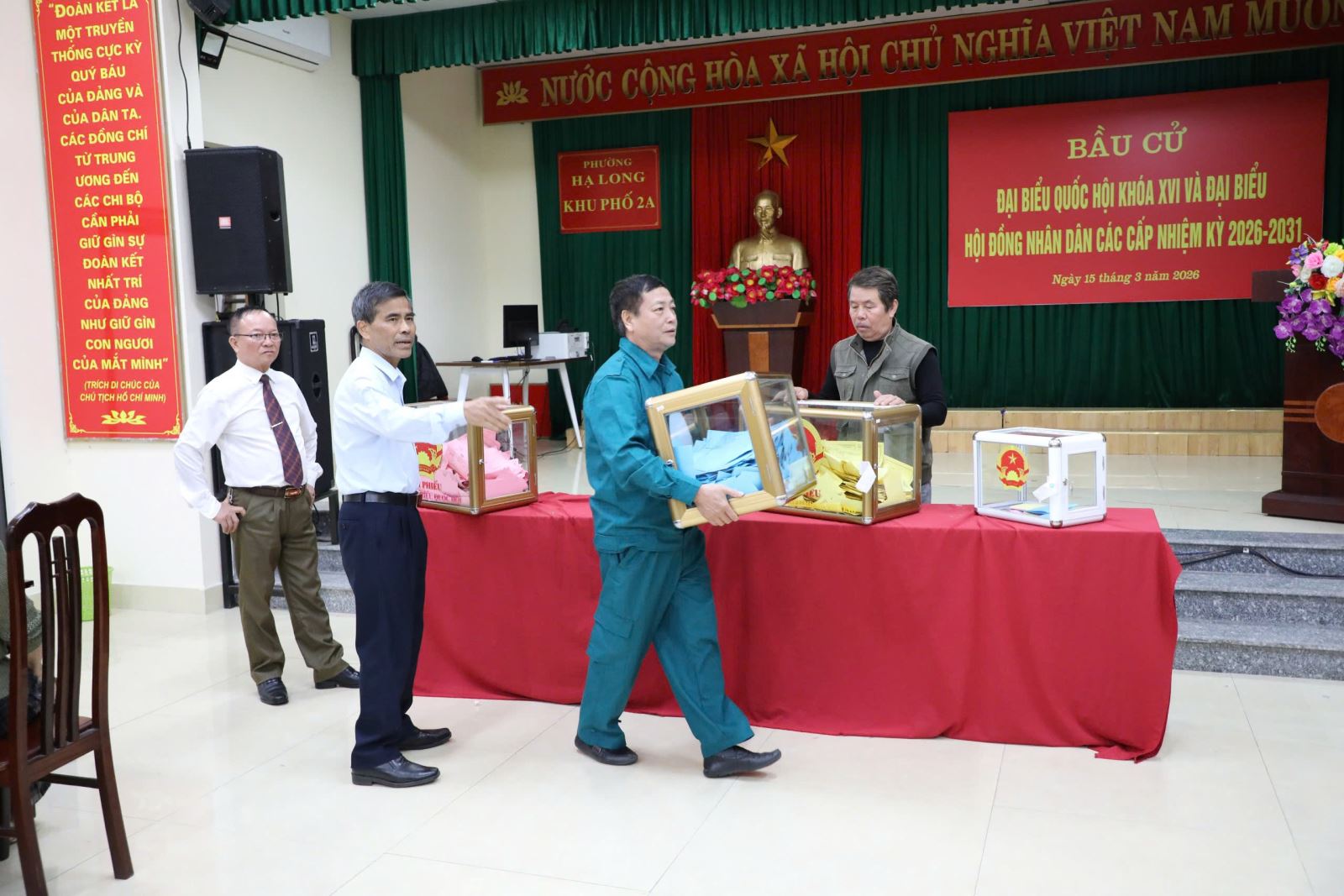 Ngay sau nghi lễ khai mạc ngắn gọn, trang trọng, các thành viên tổ bầu cử vào vị trí thực hiện nhiệm vụ theo phân công. Đại diện lãnh đạo, đại diện cử tri cao tuổi trong khu vực bỏ phiếu thực hiện quyền bầu cử, bỏ lá phiếu đầu tiên để lựa chọn những đại biểu thực sự đủ đức, đủ tài, có tâm, có tầm vào Quốc hội khóa XVI và đại biểu Hội đồng nhân dân các cấp nhiệm kỳ 2026-2031.