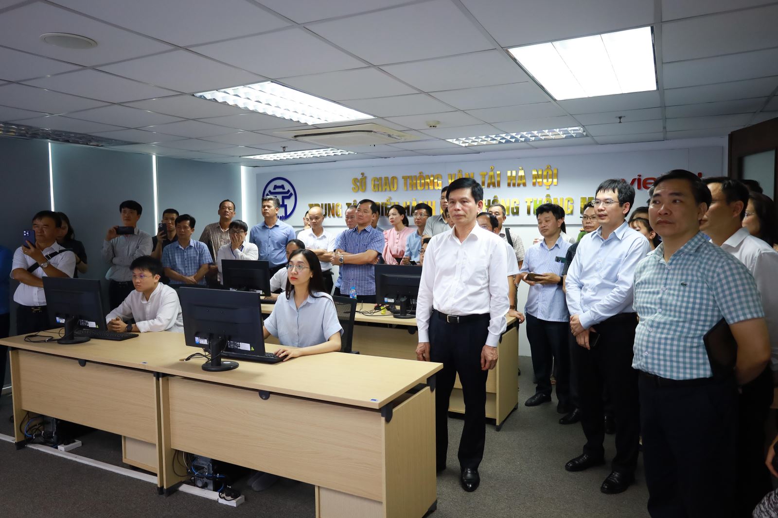 Thứ trưởng Lê Anh Tuấn và các đại biểu tham quan Trung tâm Điều hành giao thông thông minh Thành phố Hà Nội