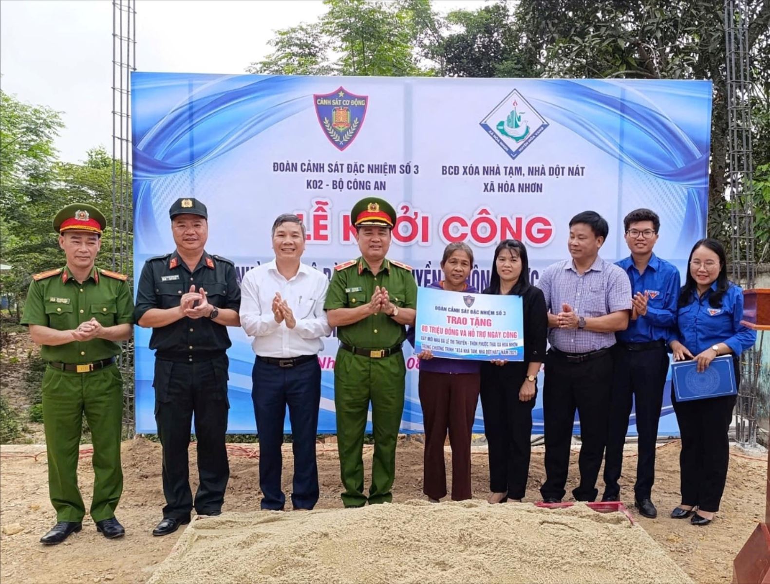 Bà Nguyễn Thị Kích (xã Hòa Vang) là hộ nghèo, lớn tuổi, sống đơn thân trong căn nhà xuống cấp. Qua vận động, Đoàn Cảnh sát đặc nhiệm số 3, Bộ Công an đảm nhận hỗ trợ xây nhà mới. Cán bộ, chiến sĩ trích tiền lương đóng góp 100 triệu và hỗ trợ 200 ngày công giúp xây nhà mới cho bà Kích. Sau 2 tháng xây dựng, căn nhà hoàn thành và bàn giao đúng hạn.