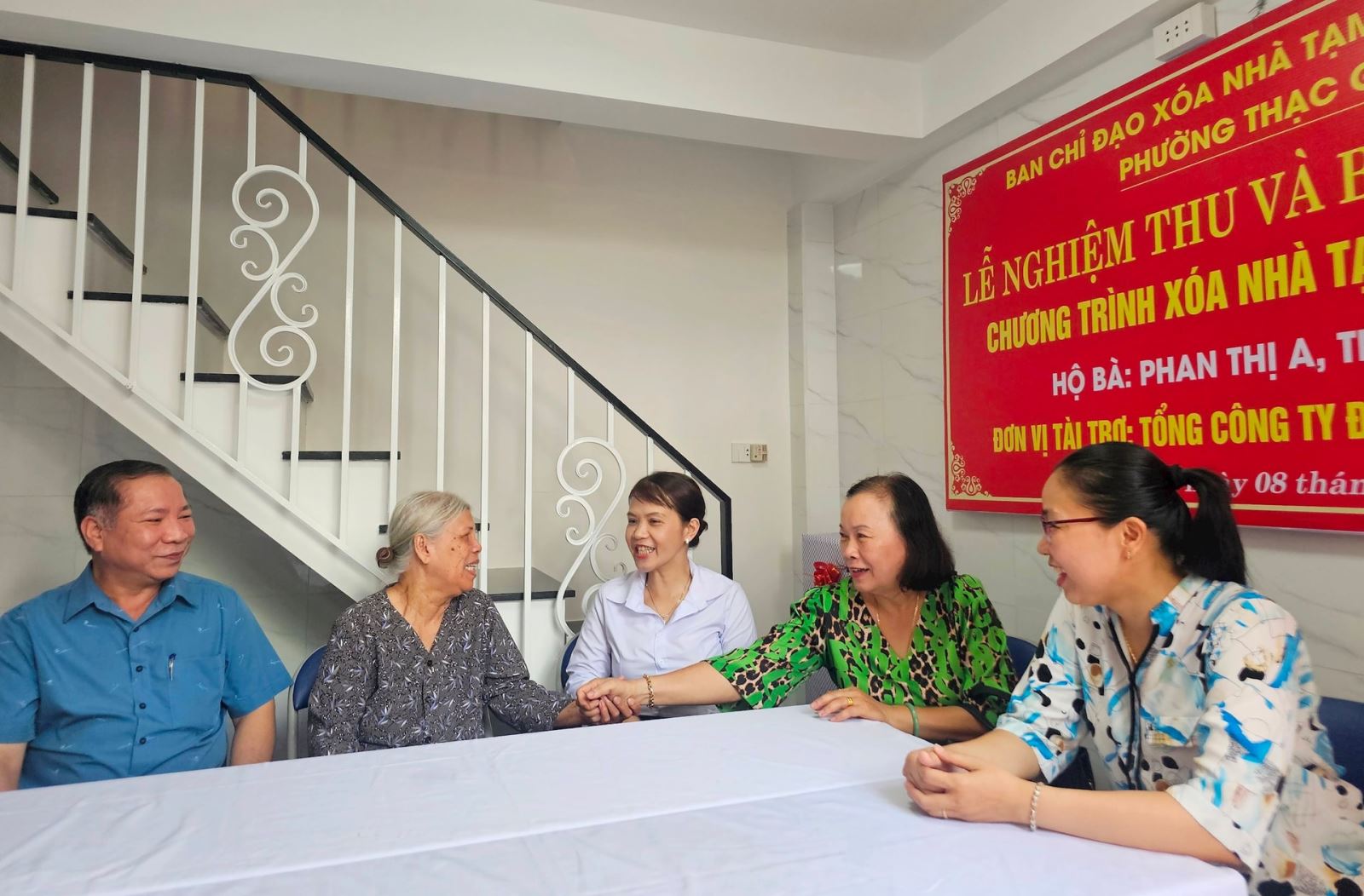 Chương trình hỗ trợ xóa nhà tạm, nhà dột nát giúp hàng nghìn người có nơi ở mới, ổn định cuộc sống. Trong ảnh: Lãnh đạo phường Thanh Khê chia sẻ niềm vui an cư với người nghèo