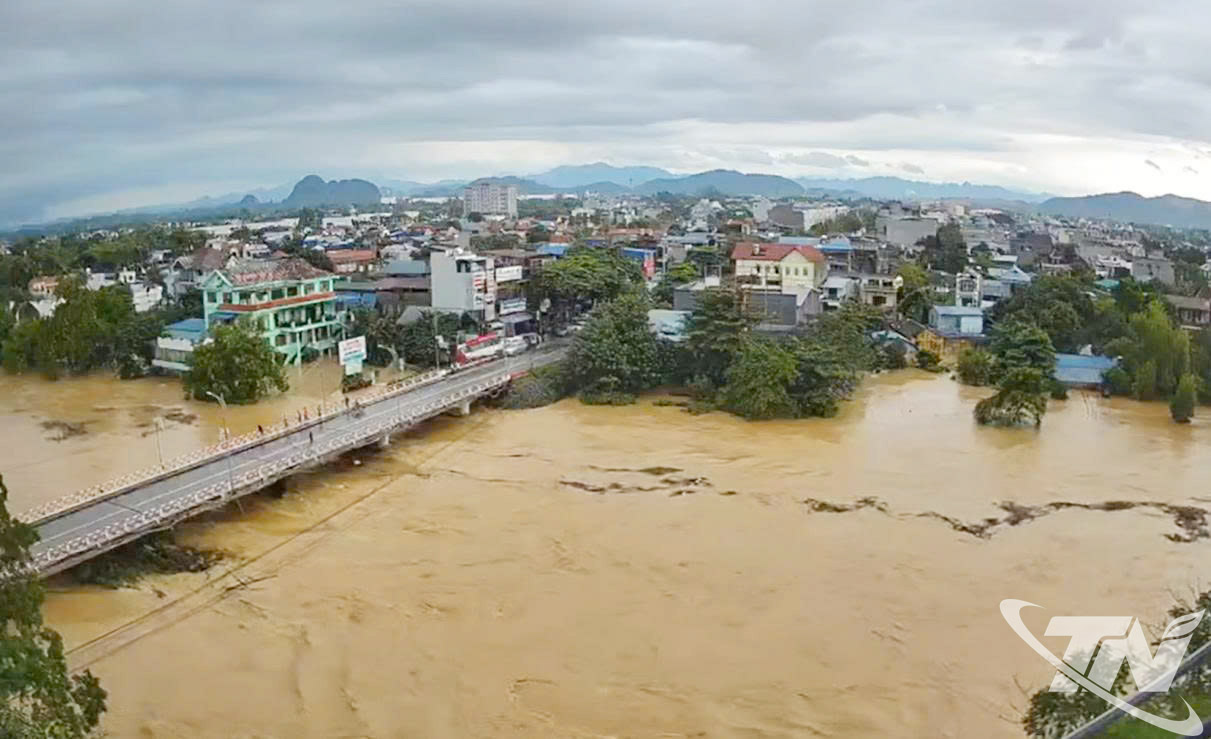 Cầu Gia Bẩy trong đợt mưa lũ lịch sử do ảnh hưởng bão số 11.