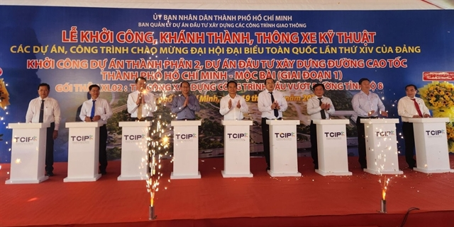Chairman of the HCM City People’s Committee Nguyễn Văn Được and delegates perform a groundbreaking ceremony for Component Project 2 of the HCM City–Mộc Bài Expressway (Phase 1). — Photo hanoimoi.vn