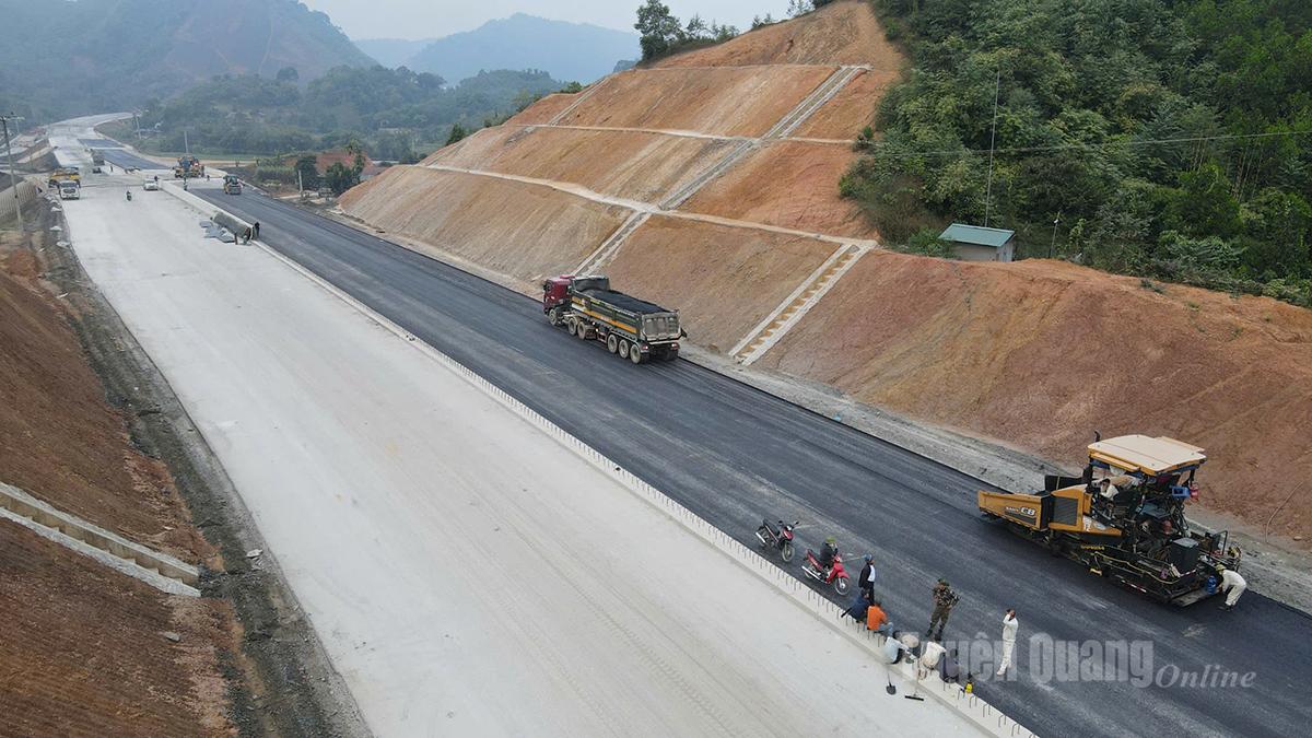 Trên tuyến Cao tốc Tuyên Quang - Hà Giang (giai đoạn 1) mặc dù đã được thông xe kỹ thuật nhưng vẫn có hàng nghìn kỹ sư, công nhân đang miệt mài thi công để đưa dự án vào khai thác đúng kế hoạch. Đây là một trong những trục giao thông “huyết mạch” kết nối vùng, thúc đẩy giao thương và phát triển kinh tế vùng Đông Bắc Bộ. Ngay từ sáng sớm, tiếng động cơ, tiếng xe di chuyển vật liệu… tạo nên một bản hòa ca lao động không ngừng nghỉ.