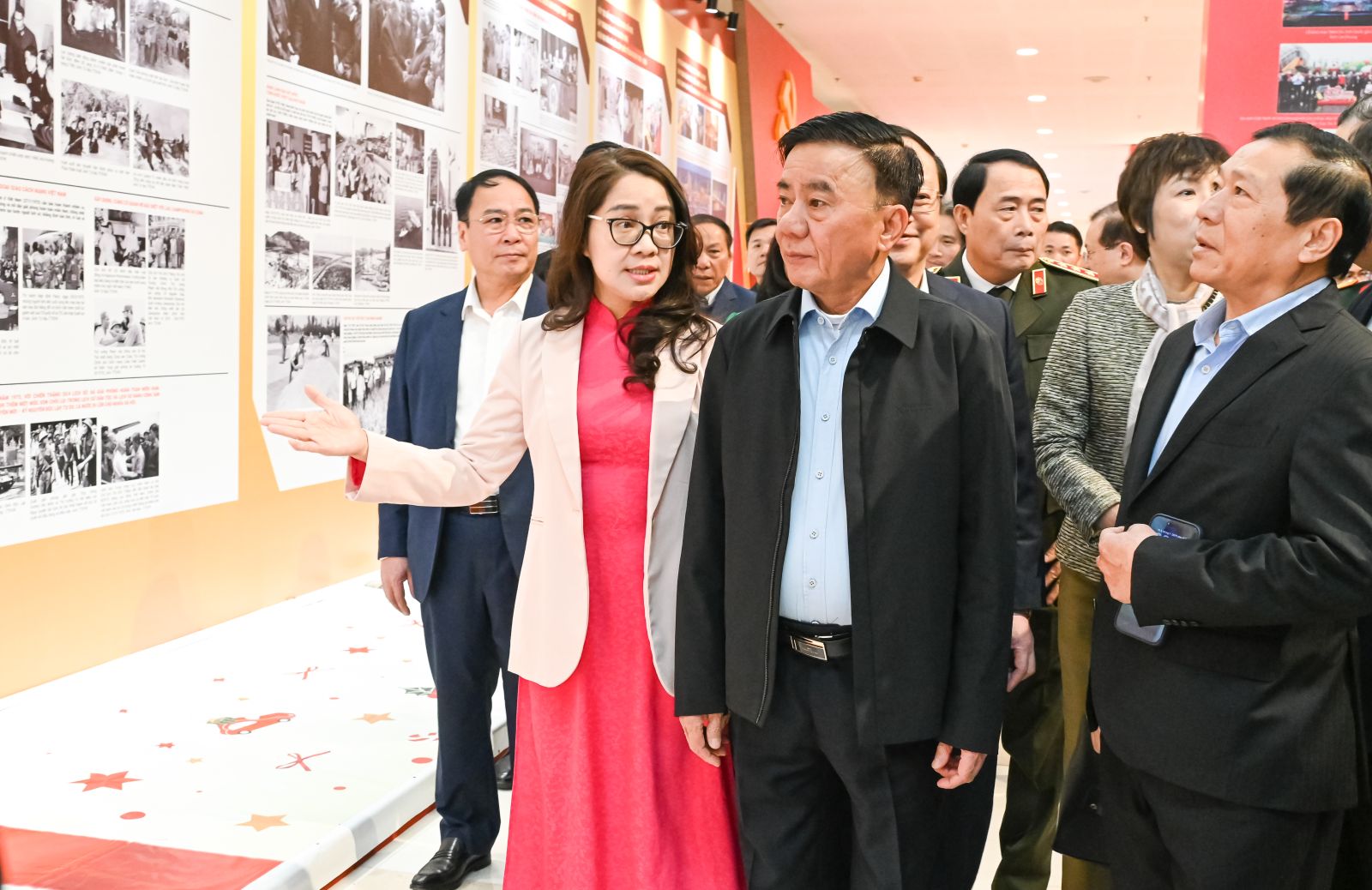 Đồng chí Thường trực Ban Bí thư Trần Cẩm Tú kiểm tra khu vực trưng bày sách, báo.
