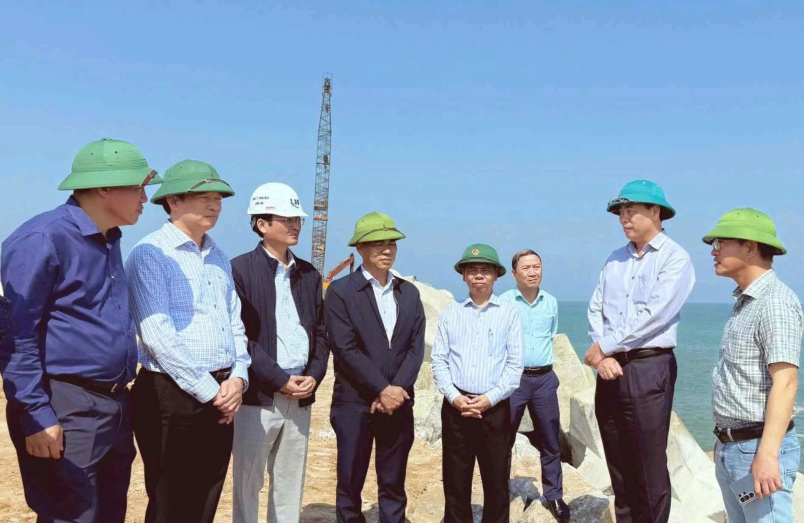 Đồng chí Nguyễn Đăng Quang, Phó Bí thư Tỉnh ủy, Chủ tịch HĐND tỉnh kiểm tra tiến độ thi công dự án Khu bến cảng Mỹ Thủy