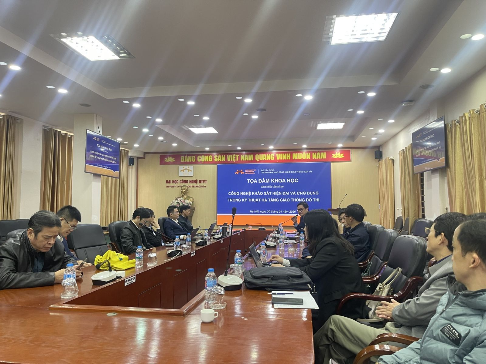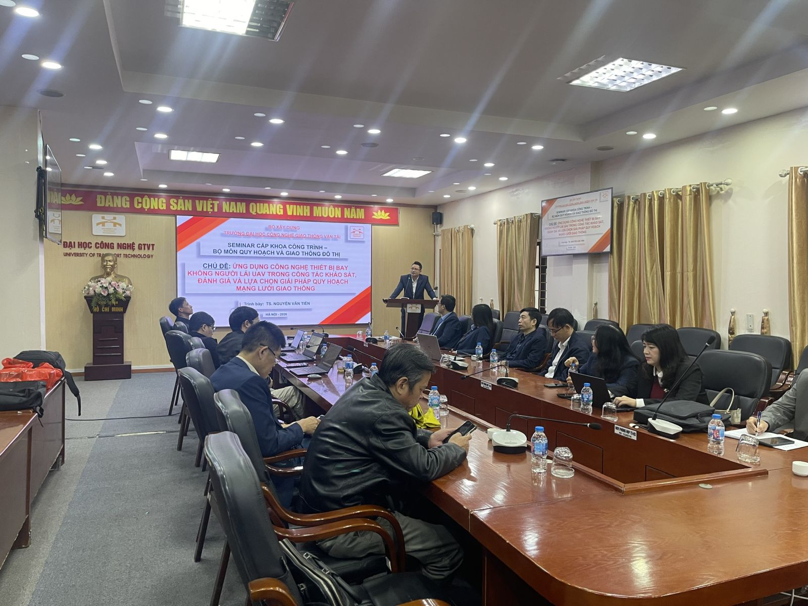 Khoa Công trình - Trường Đại học Công nghệ GTVT (UTT) vừa tổ chức thành công Tọa đàm khoa học với chủ đề “Công nghệ khảo sát hiện đại và ứng dụng trong kỹ thuật hạ tầng giao thông đô thị”. Buổi tọa đàm đã mang đến những góc nhìn mới mẻ về việc ứng dụng công nghệ thiết bị bay không người lái (UAV), ứng dụng dữ liệu khảo sát quét laser LiDAR và mô hình thông tin công trình (BIM) trong công tác quy hoạch, thiết kế hạ tầng kỹ thuật và giao thông đô thị.