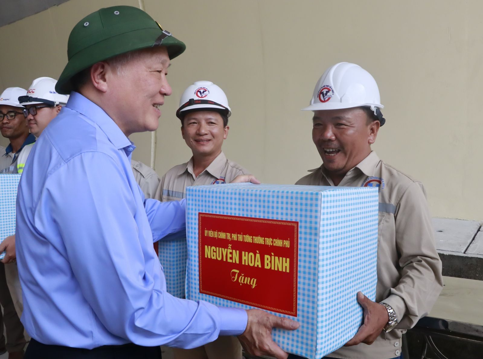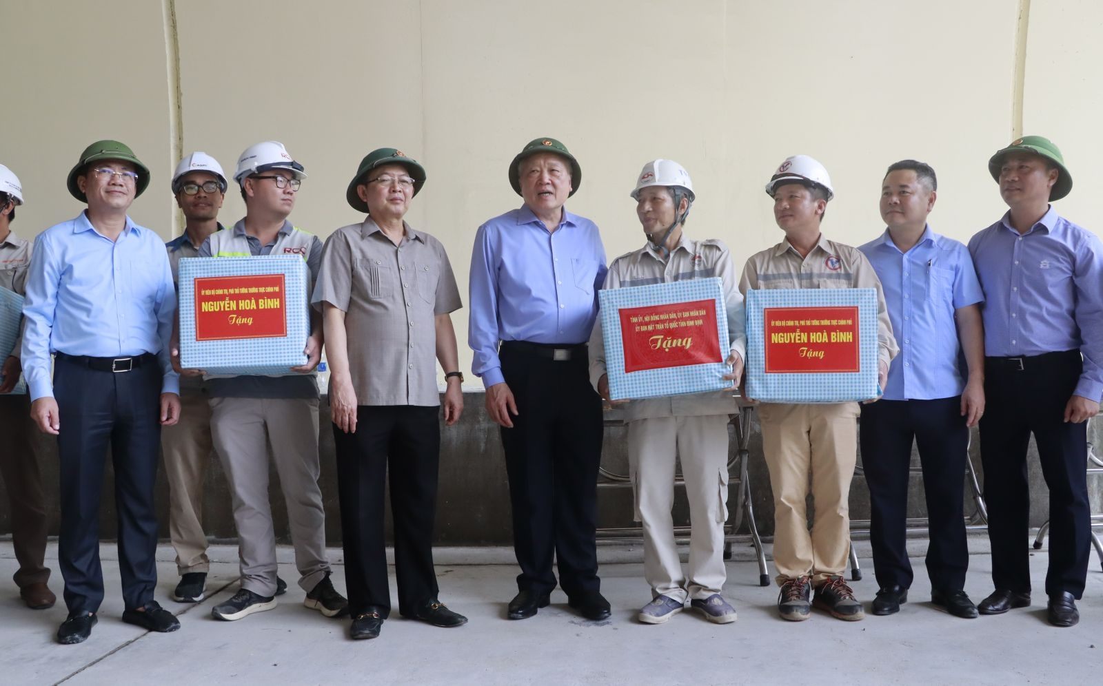 Phó Thủ tướng Thường trực Nguyễn Hòa Bình tặng quà cho cán bộ, người lao động làm việc tại dự án