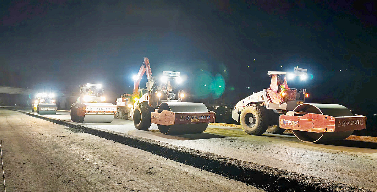 Thi công xuyên đêm, đẩy nhanh tiến độ.