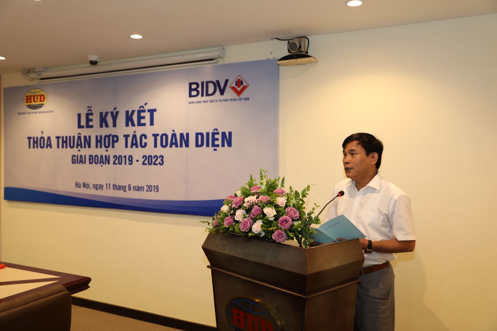 Ông Bùi Hoàng Kiều phát biểu tại Lễ ký thỏa thuận hợp tác toàn diện giữa HUD và BIDV giai đoạn 2019 - 2023