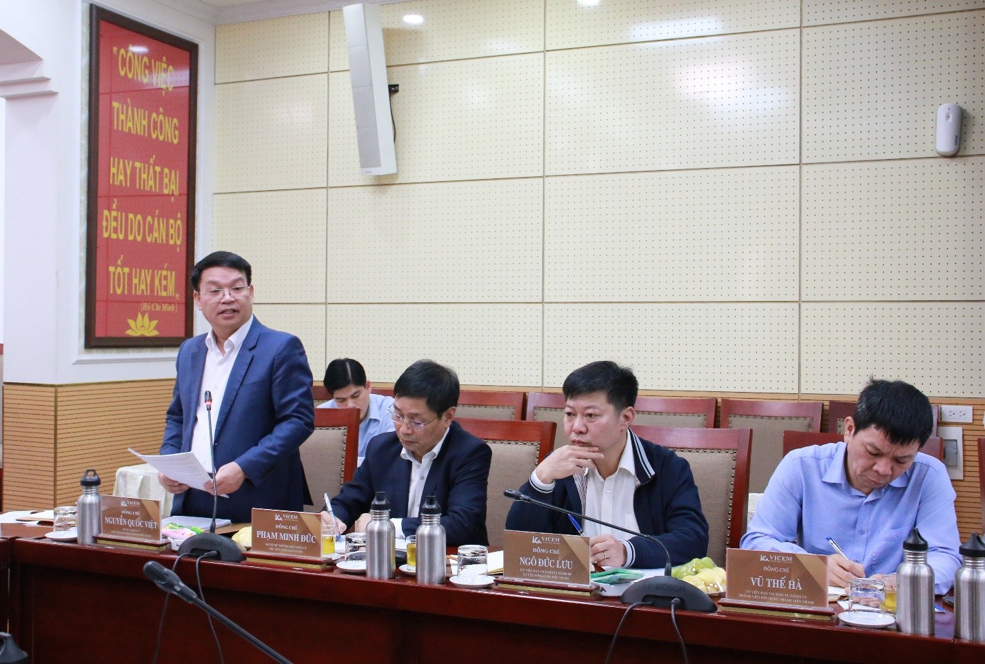 Phát biểu kết luận tại buổi làm việc, Bộ trưởng Bộ Xây dựng Trần Hồng Minh yêu cầu Hội đồng thành viên, Ban điều hành VICEM cần đổi mới ngay phương thức lãnh đạo, chỉ đạo, điều hành, nâng cao hiệu quả quản lý, quản trị doanh nghiệp, ứng dụng mạnh mẽ tiến bộ khoa học, công nghệ, rà soát ngay tất cả các khâu đầu vào, tiết giảm các bộ phận, thủ tục không cần thiết nhằm tiết kiệm tối đa chi phí không cần thiết.