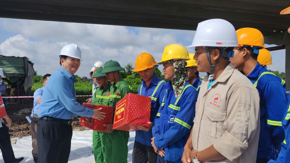 Nhân dịp này, nhằm động viên, khích lệ tinh thần, ông Mai Văn Chính, Phó Thủ tướng Chính phủ đã tặng phần quà cho các công nhân đang thi công trên công trường cầu Bình Gởi.