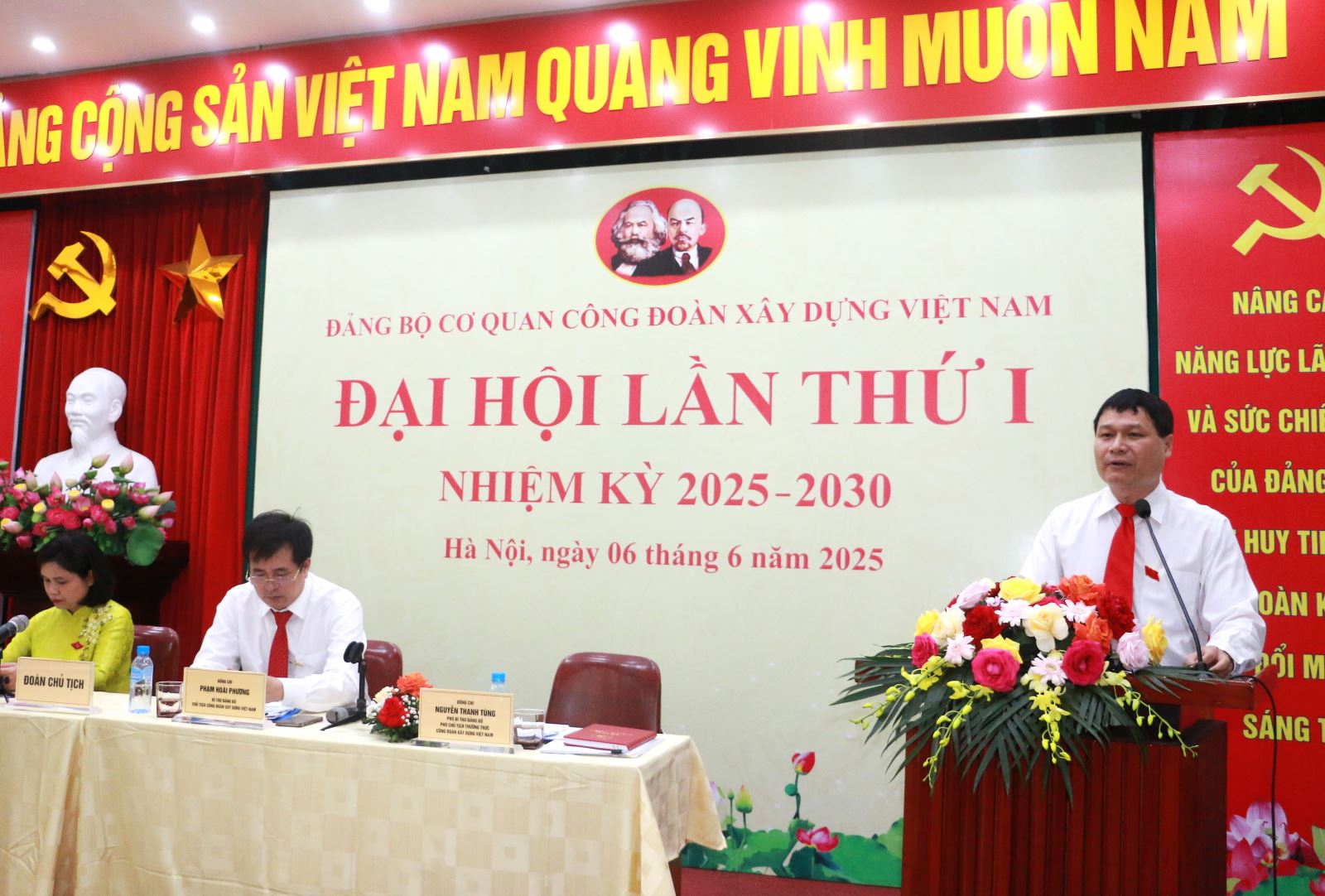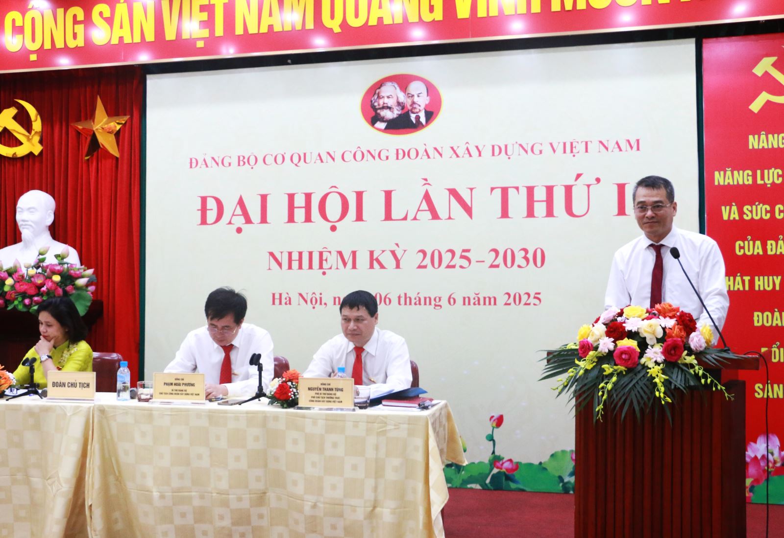 Phát biểu khai mạc Đại hội, đồng chí Phạm Hoài Phương, Bí thư Đảng ủy, Chủ tịch Công đoàn Xây dựng Việt Nam, khẳng định: Đại hội Đảng bộ Cơ quan Công đoàn Xây dựng Việt Nam lần thứ I, nhiệm kỳ 2025-2030 là đợt sinh hoạt chính trị sâu rộng trong cán bộ, đảng viên Đảng bộ; khẳng định bản lĩnh chính trị, sự đoàn kết, thống nhất cao trong Đảng bộ, thể hiện sự quyết tâm xây dựng Đảng bộ trong sạch, vững mạnh toàn diện. Công tác chuẩn bị cho Đại hội, từ xây dựng văn kiện, phương án nhân sự đến tổ chức đại hội các chi bộ trực thuộc, đều được triển khai bài bản, đúng quy trình và kế hoạch đề ra.