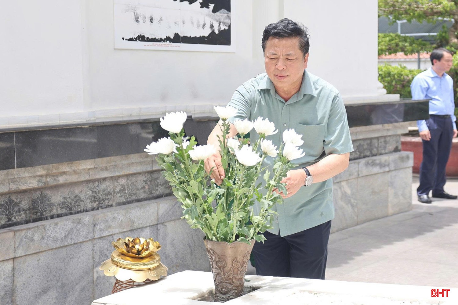 Bộ trưởng Bộ Xây dựng Trần Hồng Minh và đoàn công tác dâng hương tại Đài tưởng niệm các anh hùng liệt sĩ ngành GTVT hy sinh tại Hà Tĩnh trong cuộc kháng chiến chống Mỹ.