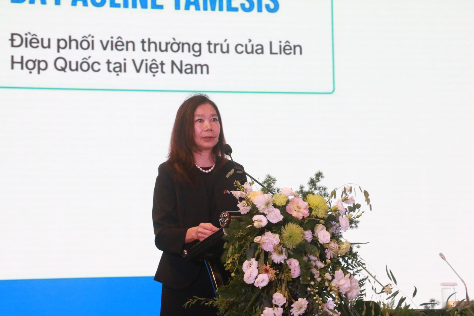 Bà Pauline Tamesis - Điều phối viên thường trú của Liên Hợp Quốc tại Việt Nam, phát biểu về tầm nhìn toàn cầu trong phát triển đô thị bền vững và những bài học rút ra từ dự án ISCB