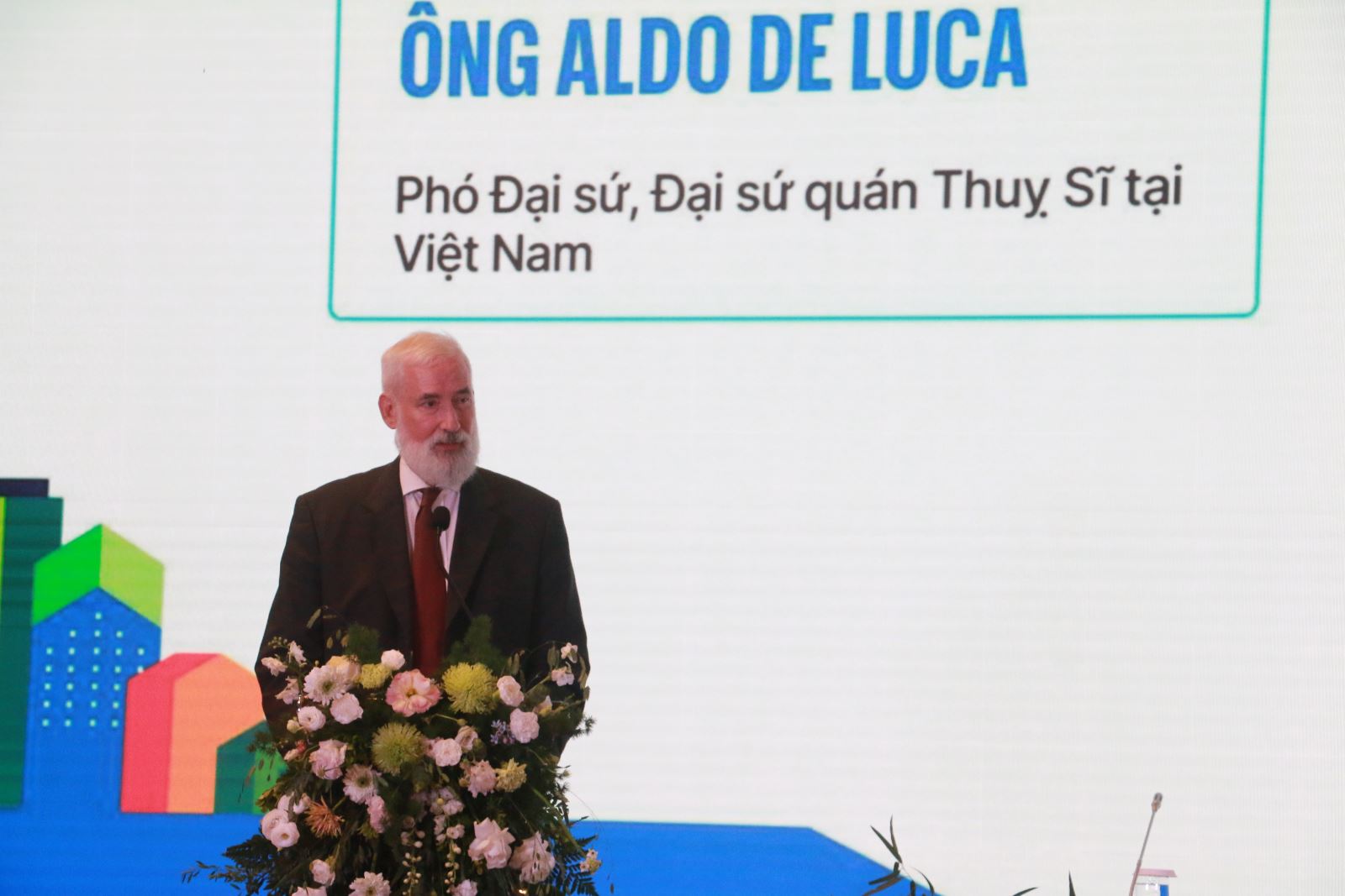 Ông Aldo de Luca - Phó Đại sứ Thụy Sĩ tại Việt Nam, đại diện đơn vị tài trợ, chia sẻ về hành trình của Thụy Sĩ hỗ trợ phát triển đô thị tại Việt Nam giai đoạn 2025 - 2028