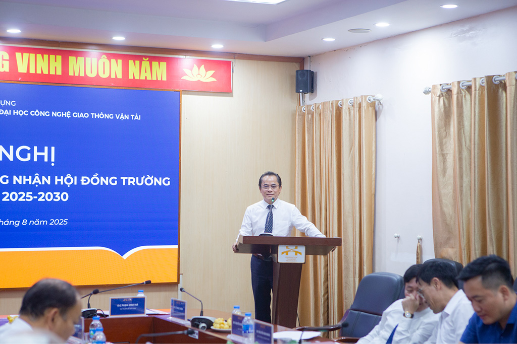 Phát biểu tại Hội nghị, Thứ trưởng Bộ Xây dựng Phạm Minh Hà cho biết, ngày 12/8/2025, Bộ trưởng Bộ Xây dựng đã có Quyết định công nhận Hội đồng trường Trường Đại học Công nghệ GTVT nhiệm kỳ 2025-2030 gồm 23 thành viên và công nhận Chủ tịch Hội đồng trường là đồng chí Vũ Ngọc Khiêm, Bí thư Đảng ủy trường. Đây là vinh dự và trách nhiệm to lớn đối với các thành viên Hội đồng trường và cá nhân đồng chí Vũ Ngọc Khiêm, cũng là niềm vui chung của toàn thể cán bộ, giảng viên và sinh viên Trường Đại học Công nghệ GTVT.