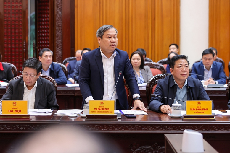 Chủ tịch UBND TP. Hà Nội Vũ Đại Thắng báo cáo - Ảnh: VGP/Nhật Bắc