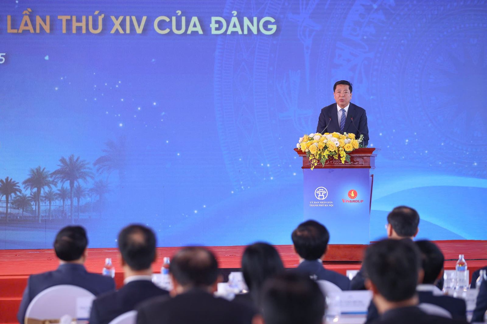 Đặc biệt, tại đây, chúng ta rất vui mừng chứng kiến Lễ khởi công đầu tư xây dựng dự án Khu đô thị thể thao Olympic với tổng vốn đầu tư khoảng 925.000 tỷ đồng, nguồn vốn tư nhân. Sau khi hoàn thành, sẽ hình thành một quần thể đô thị - thể thao hiện đại, đồng bộ, đủ điều kiện để Thủ đô Hà Nội đăng cai các sự kiện thể thao lớn tầm khu vực và quốc tế, tạo không gian kiến trúc - cảnh quan hiện đại cho khu vực phía Nam thành phố.