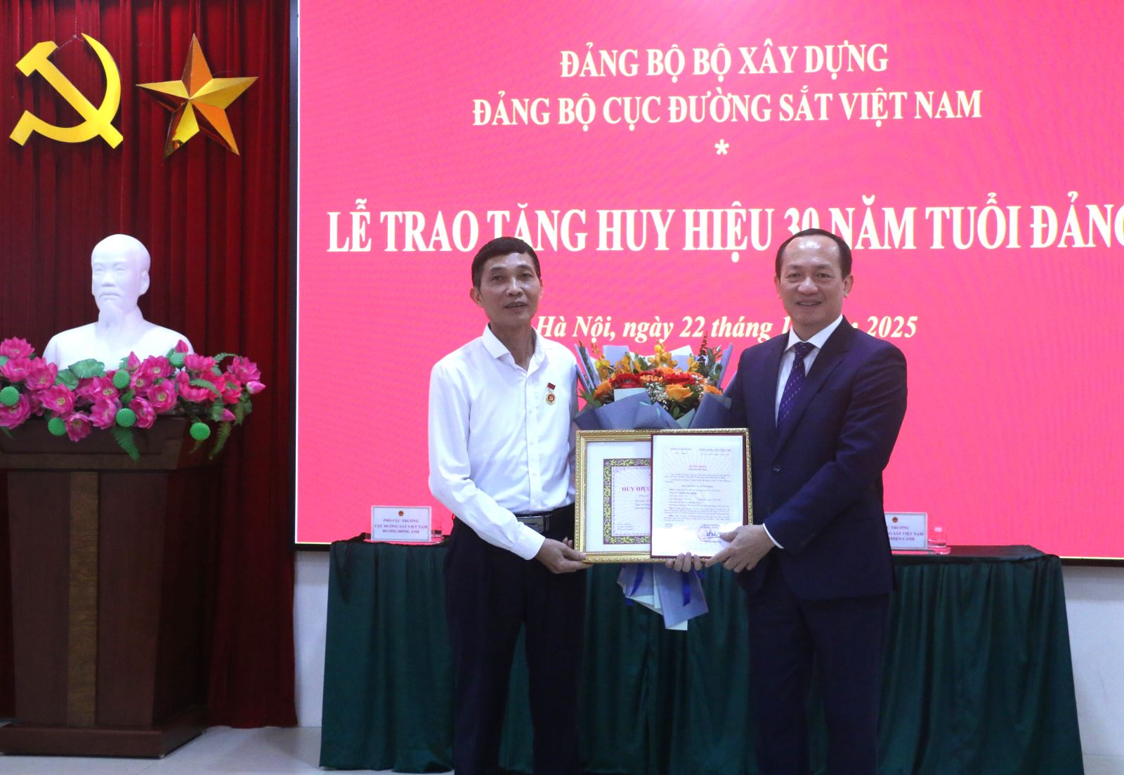 Cục trưởng Cục ĐSVN Trần Thiện Cảnh trao tặng Huy hiệu 30 năm tuổi Đảng cho đồng chí Nguyễn Hữu Quang