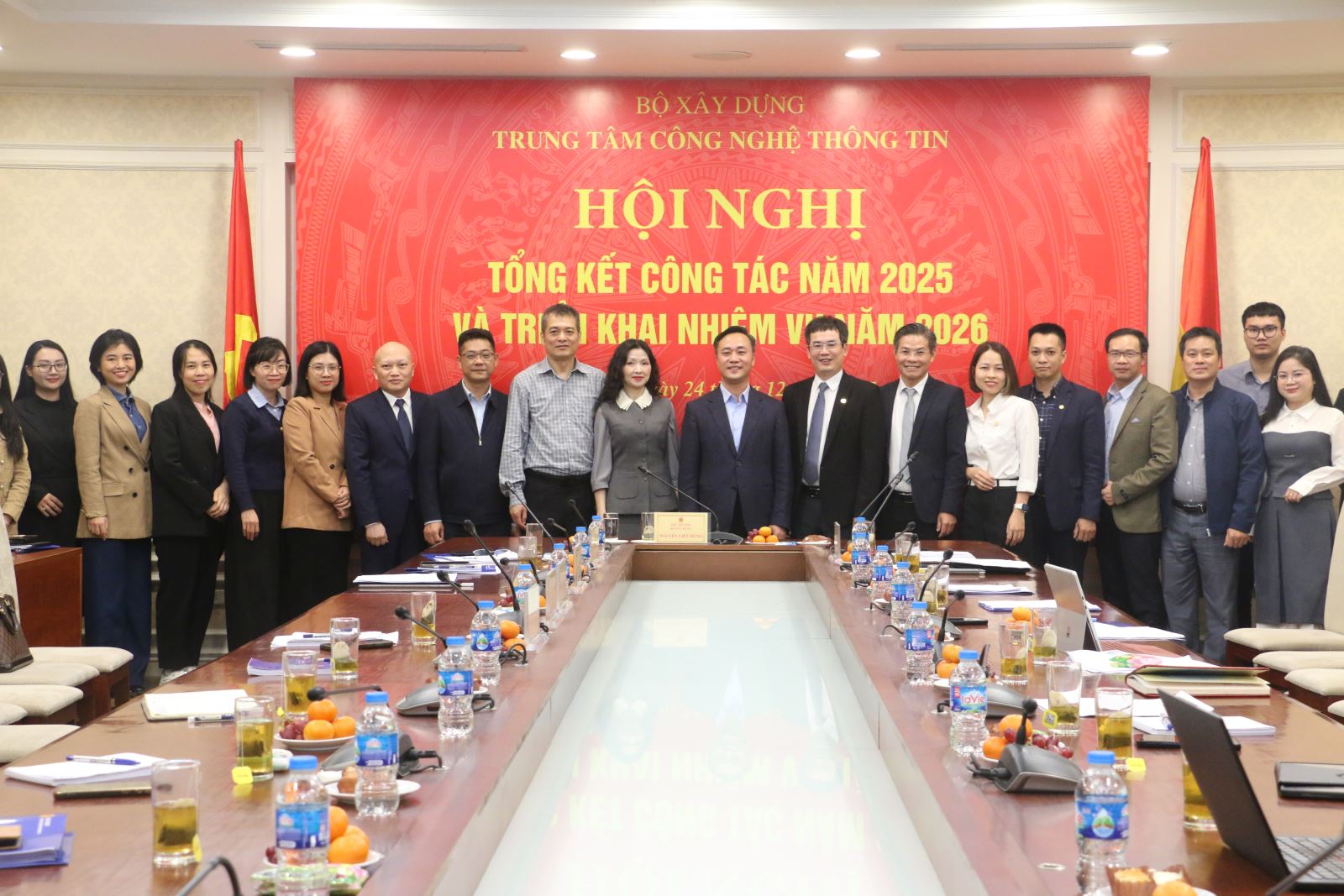 "Trung tâm đã hoàn thành việc triển khai đưa vào vận hành Hệ thống thông tin, Cơ sở dữ liệu quốc gia về hoạt động xây dựng cùng 09 cơ sở dữ liệu chuyên ngành; Cơ bản hoàn thành tái cấu trúc thủ tục hành chính (TTHC), cắt giảm thành phần hồ sơ phải nộp và xuất trình dựa trên dữ liệu đã có; Đưa vào triển khai Hệ thống thông tin giải quyết TTHC tập trung tại cấp xã của Bộ Xây dựng và tích hợp đầy đủ với Cổng Dịch vụ công quốc gia", Giám đốc Trung tâm CNTT Lê Thanh Tùng báo cáo đồng thời cho biết thêm, một trong những điểm sáng nhất năm 2025 về kết quả phục vụ người dân và doanh nghiệp, Bộ Xây dựng liên tục xếp hạng 1 trong khối các bộ, ngành về chất lượng cung cấp dịch vụ công trên Cổng Dịch vụ công quốc gia. Mức độ hài lòng của người dân, doanh nghiệp đạt 93,3%.