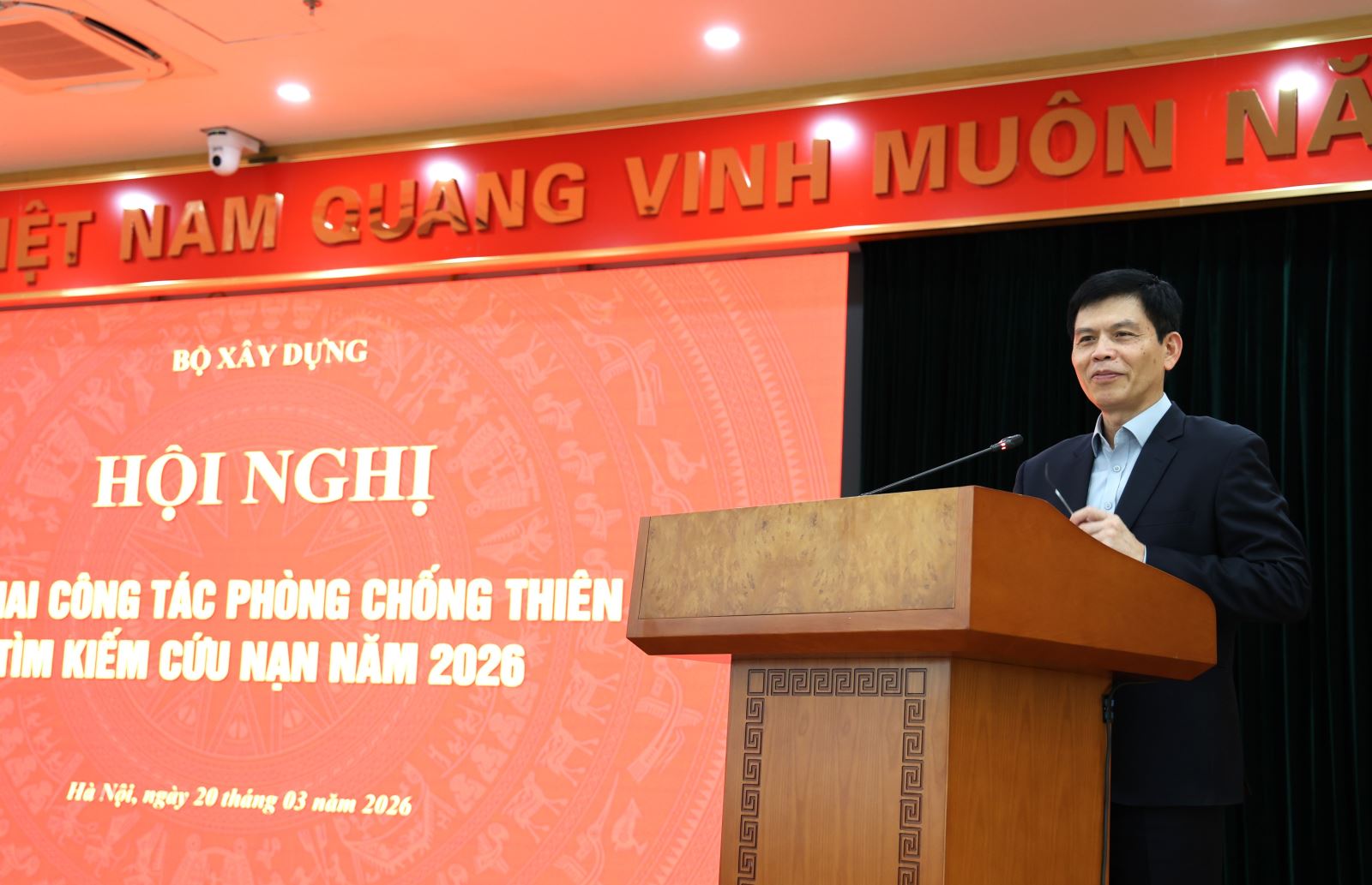 Kết luận Hội nghị triển khai công tác phòng, chống thiên tai, tìm kiếm cứu nạn năm 2026, Thứ trưởng Bộ Xây dựng Lê Anh Tuấn yêu cầu toàn Ngành triển khai quyết liệt các nhiệm vụ trọng tâm về phòng thủ dân sự, phòng, chống thiên tai và tìm kiếm cứu nạn (PTDS, PCTT&TKCN) năm 2026, với tinh thần chủ động, không để bị động, bất ngờ trong mọi tình huống.