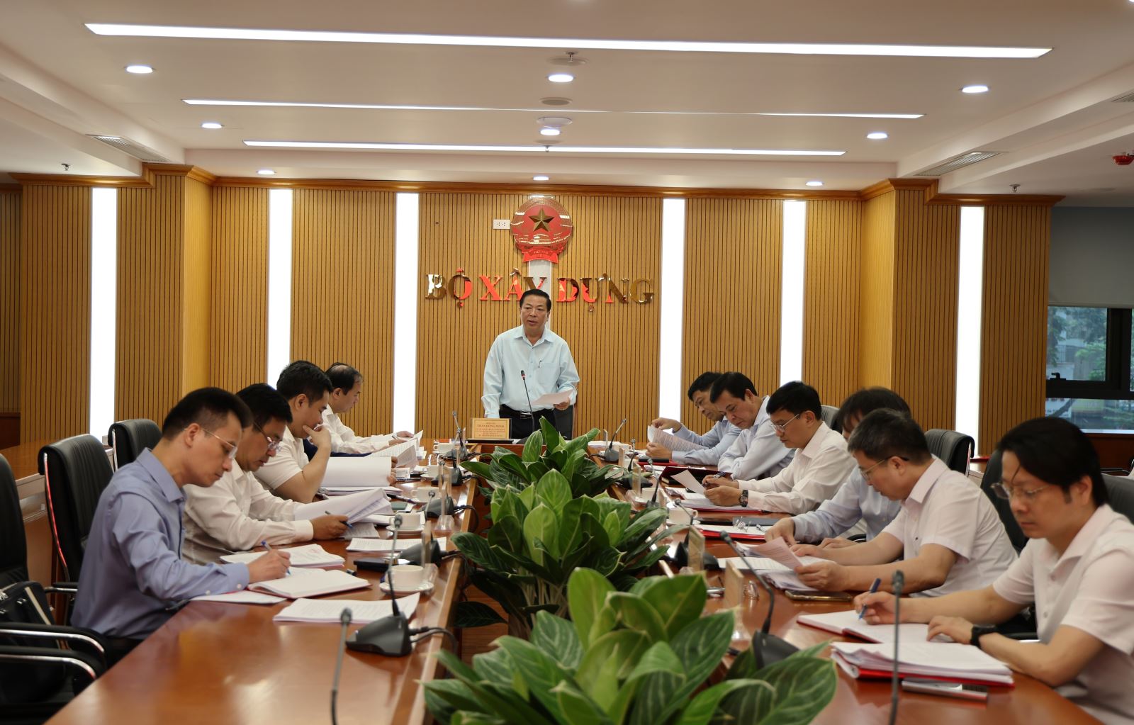 Bí thư Đảng ủy, Bộ trưởng Bộ Xây dựng Trần Hồng Minh phát biểu chỉ đạo tại phiên họp.
