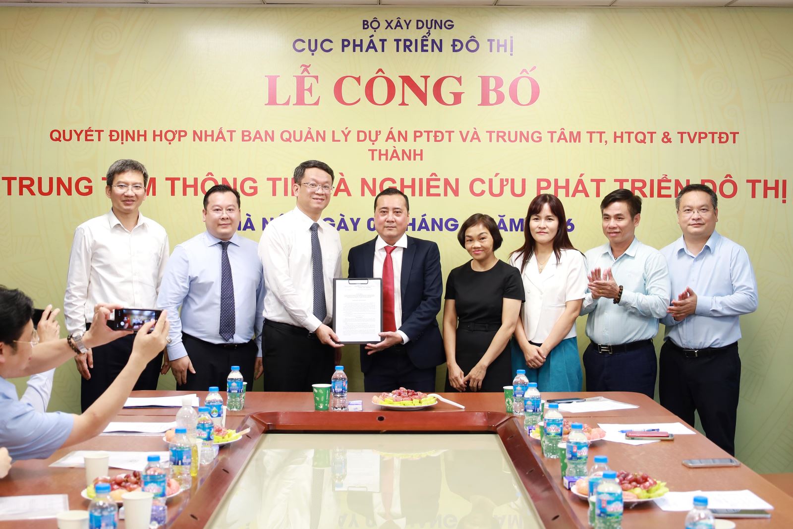 Được sự ủy quyền của Bộ trưởng Bộ Xây dựng, Cục trưởng Trần Quốc Thái và Ban lãnh đạo Cục Phát triển đô thị trao Quyết định của Bộ trưởng cho Ban Giám đốc Trung tâm
