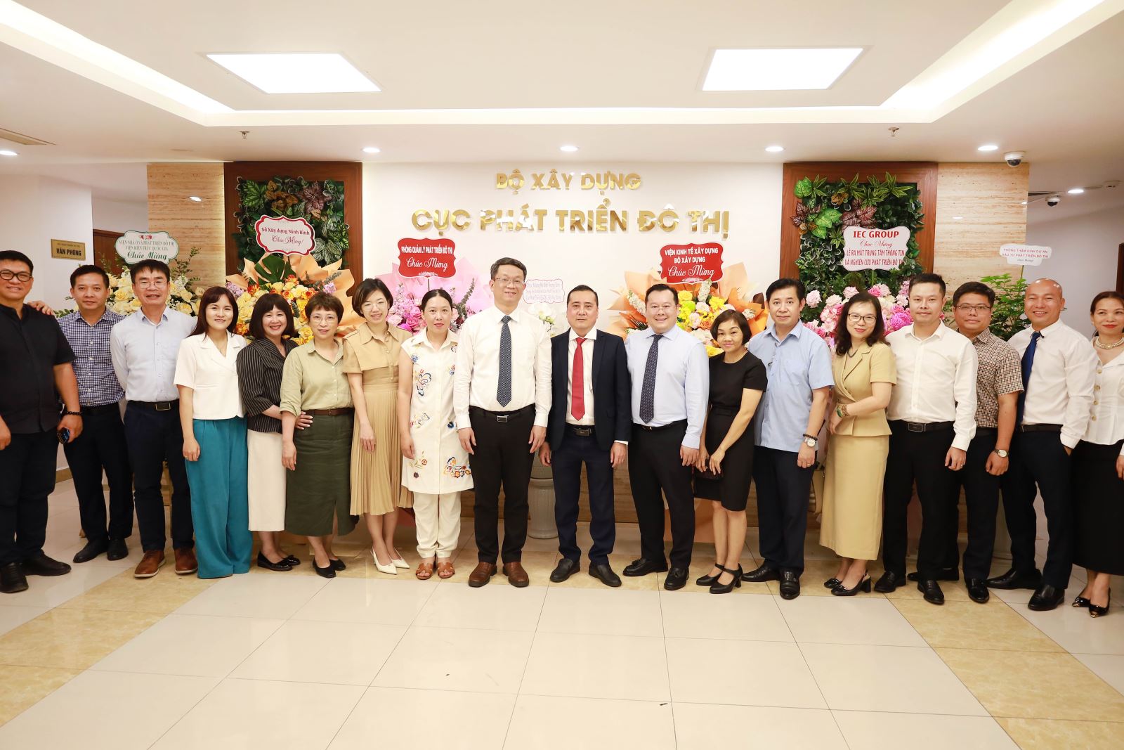 Cục trưởng Trần Quốc Thái và Ban lãnh đạo Cục Phát triển đô thị, đại biểu khách mời chụp ảnh lưu niệm cùng tập thể Ban Giám đốc, viên chức của Trung tâm
