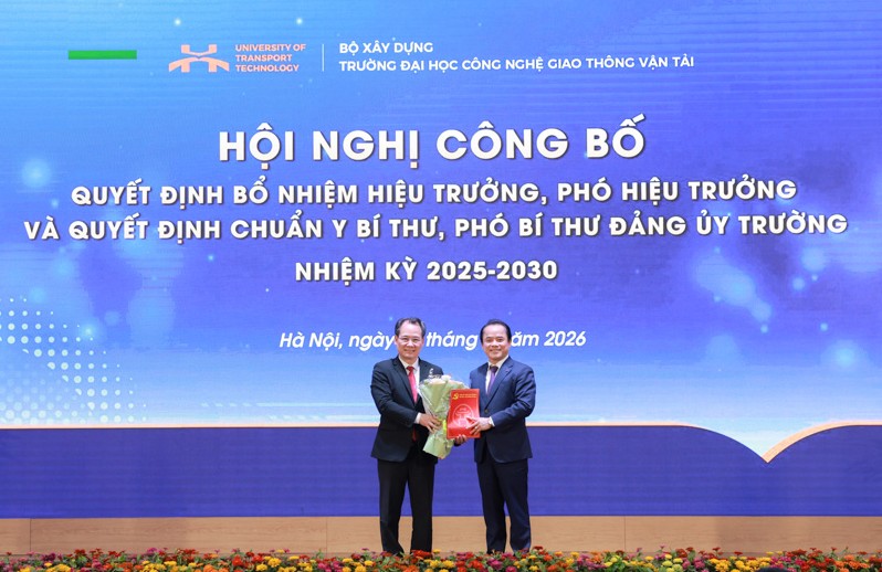 Theo quyết định của Bộ trưởng Bộ Xây dựng, PGS.TS. Nguyễn Hoàng Long được bổ nhiệm giữ chức Hiệu trưởng Trường Đại học Công nghệ GTVT, chuẩn y giữ chức Bí thư Đảng uỷ Trường nhiệm kỳ 2025-2030.