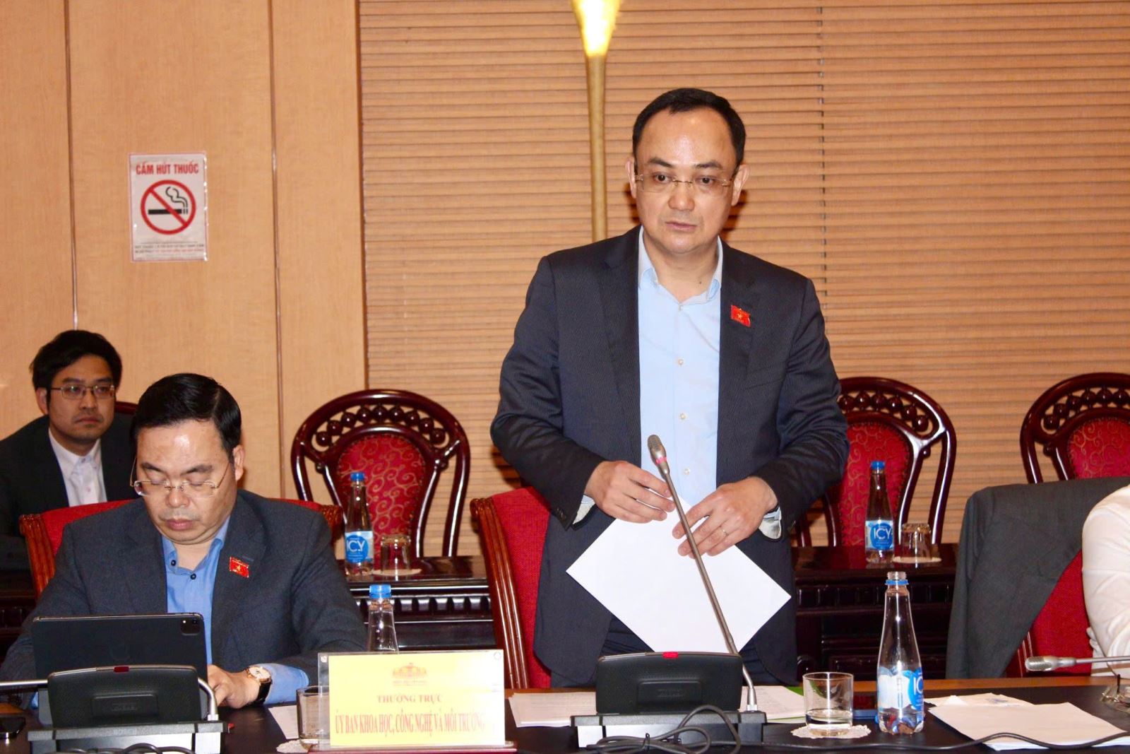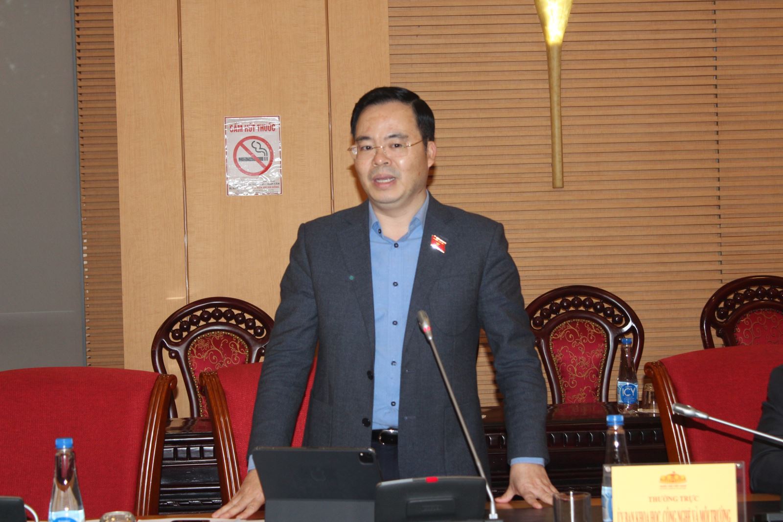 Phó Chủ nhiệm Ủy ban Khoa học, Công nghệ và Môi trường Tạ Đình Thi phát biểu tại Phiên thẩm tra