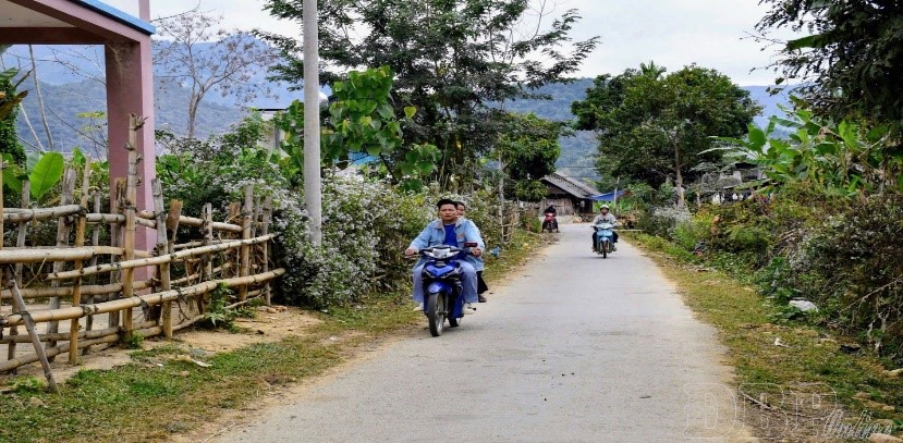 Một bộ phận người dân di chuyển trên tuyến đường nội bản xã Ẳng Cang (huyện Mường Ảng) chưa tuân thủ quy định đảm bảo an toàn giao thông.