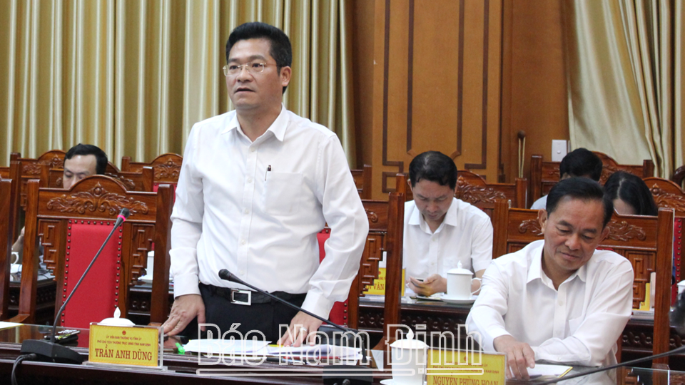 Đồng chí Trần Anh Dũng, Ủy viên Ban TVTU, Phó Chủ tịch Thường trực UBND tỉnh phát biểu tại hội nghị.