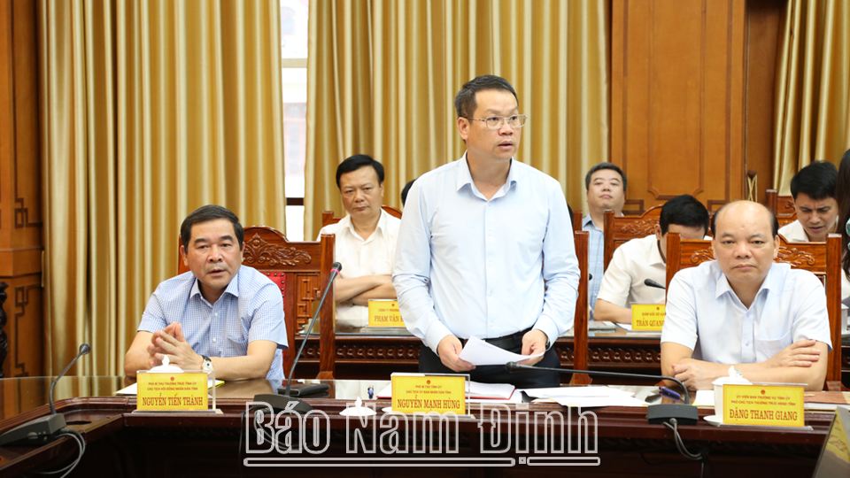 Đồng chí Nguyễn Mạnh Hùng, Chủ tịch UBND tỉnh Thái Bình phát biểu tại hội nghị.