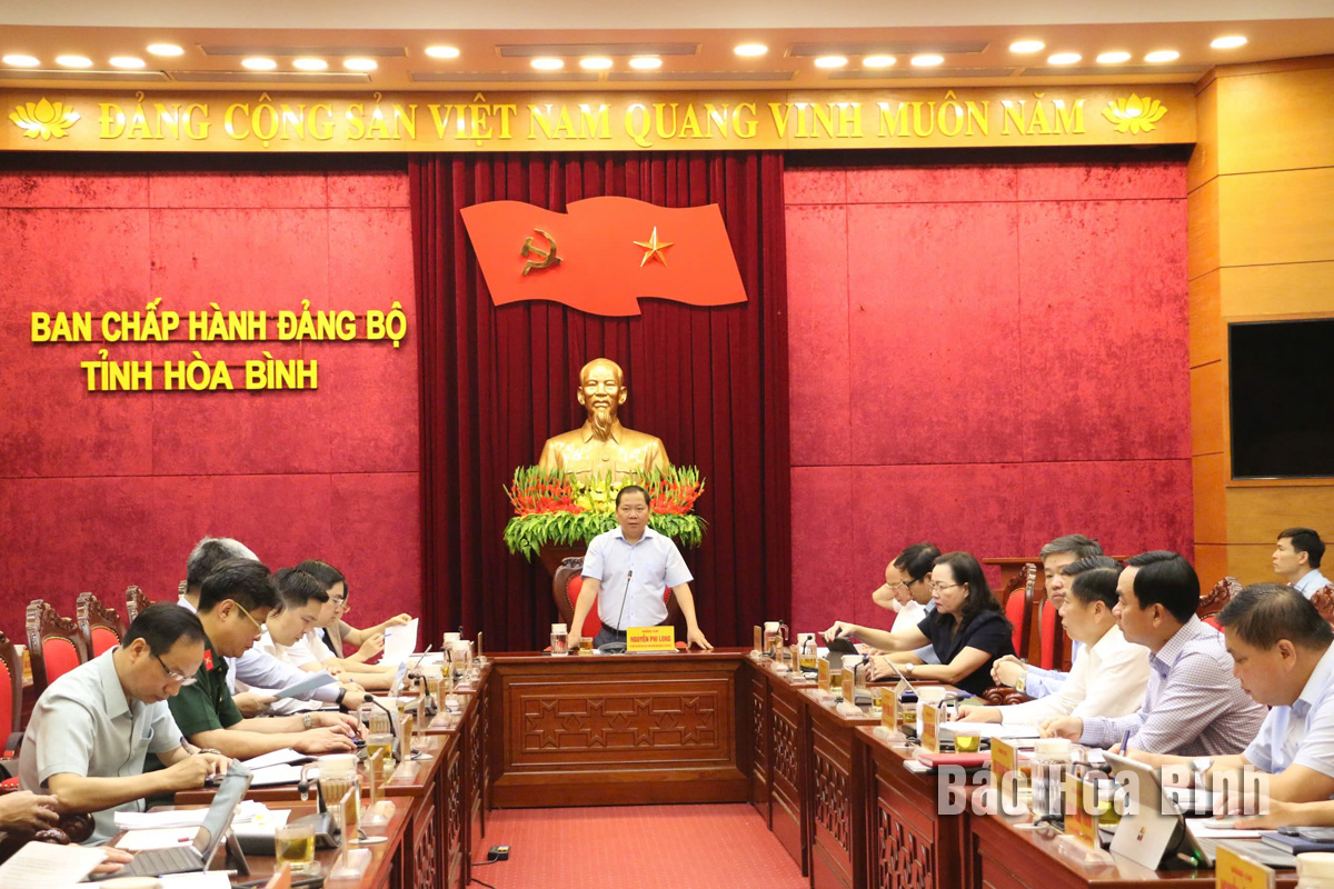 Nhiệm vụ trong thời gian tới, đồng chí Bí thư Tỉnh uỷ đề nghị: Ban Thường vụ Đảng uỷ UBND tỉnh tiếp tục chỉ đạo hoàn thành công tác bồi thường giải phóng mặt bằng các dự án giao thông trọng điểm đã được khởi công như dự án cao tốc Hoà Bình - Mộc Châu; dự án đường liên kết vùng Hoà Bình - Hà Nội và cao tốc Sơn La. Quyết tâm bàn giao mặt bằng sạch cho chủ đầu tư trong tháng 6 để tập trung thi công. UBND tỉnh tiếp tục chỉ đạo các sở, ngành hoàn thiện thủ tục khởi công dự án mở rộng đường Hòa Bình - Hòa Lạc, các dự án hạ tầng du lịch và các trường học trên địa bàn tỉnh. Đối với 10 dự án trọng điểm mới được bổ sung, UBND tỉnh cần phối hợp với chủ đầu tư rà soát, tập trung chỉ đạo, hỗ trợ hoàn thiện các thủ tục, nếu có thể thì khởi công trong tháng 8.