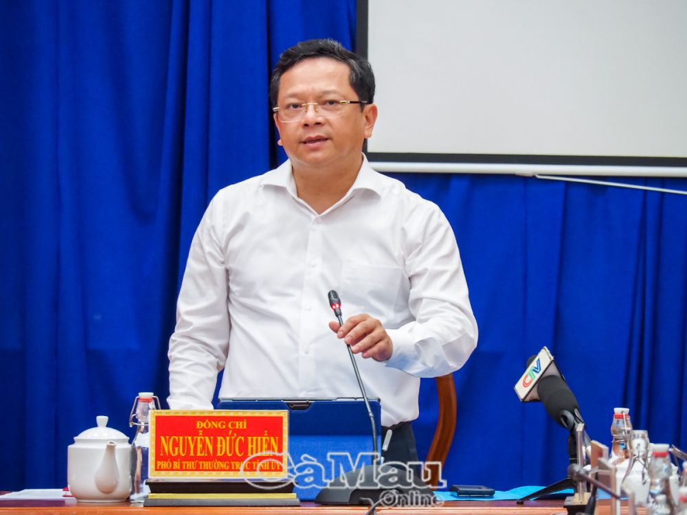 Tại buổi làm việc với huyện Phú Tân, Phó Bí thư Thường trực Tỉnh uỷ Nguyễn Đức Hiển gợi ý các địa phương nêu những khó khăn, vướng mắc để kịp thời tháo gỡ.