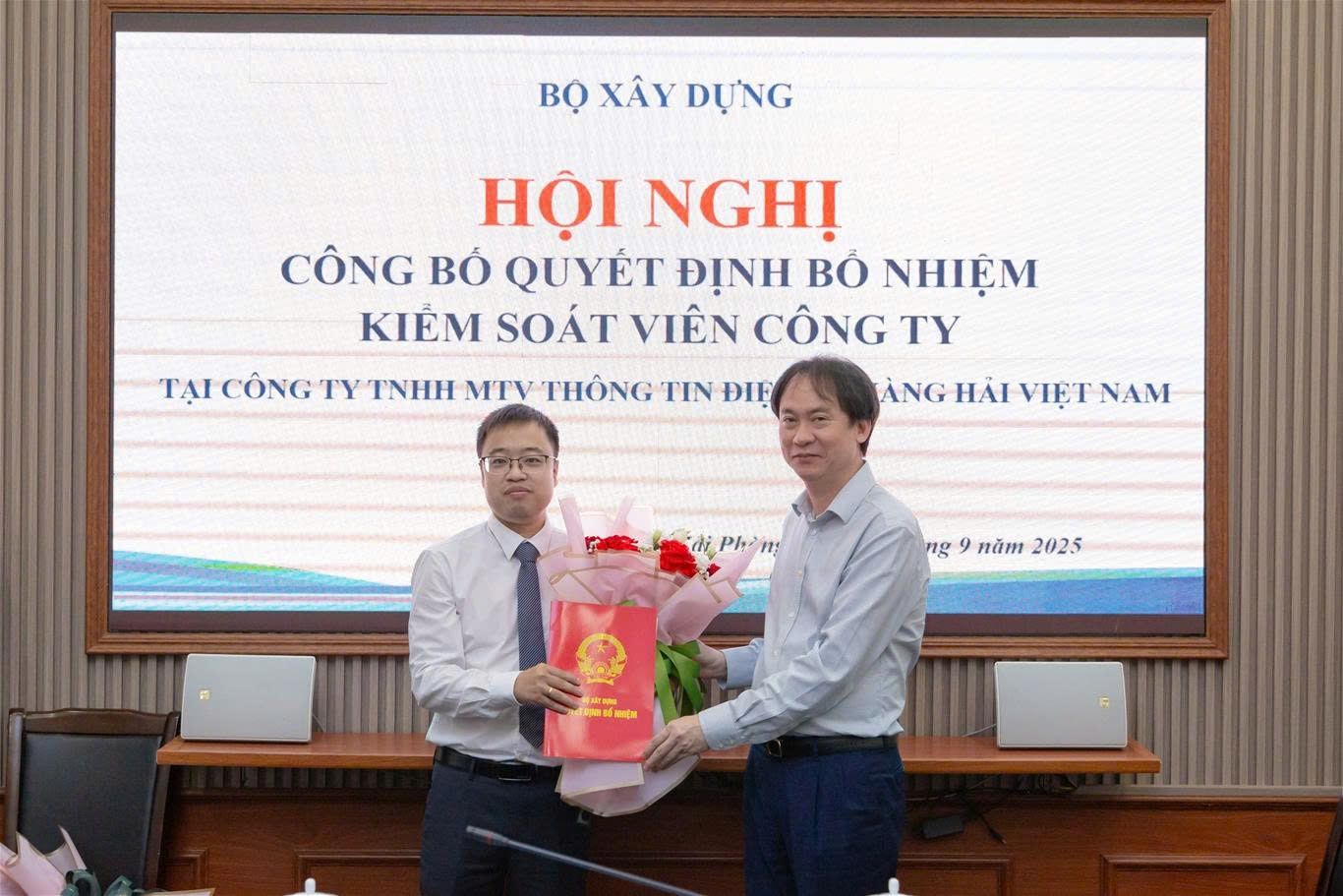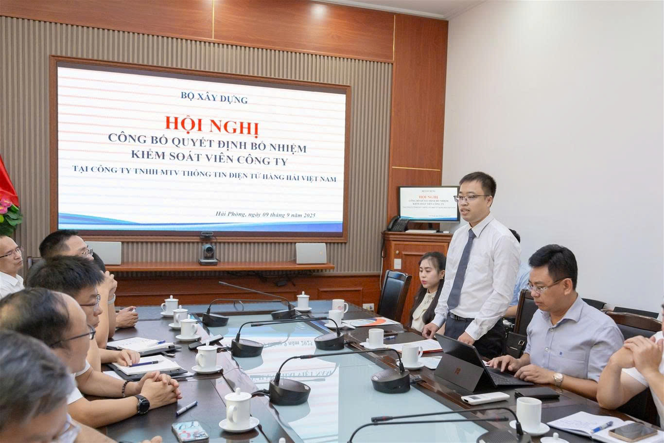 Sáng 09/9/2025, tại trụ sở Công ty TNHH MTV Thông tin điện tử hàng hải Việt Nam (Công ty VISHIPEL) đã diễn ra Hội nghị Công bố Quyết định bổ nhiệm chức danh Kiểm soát viên cho đồng chí Chu Thành Trung - Phó Trưởng phòng Kiểm tra - Quyết toán, Vụ Kế hoạch - Tài chính, Bộ Xây dựng.