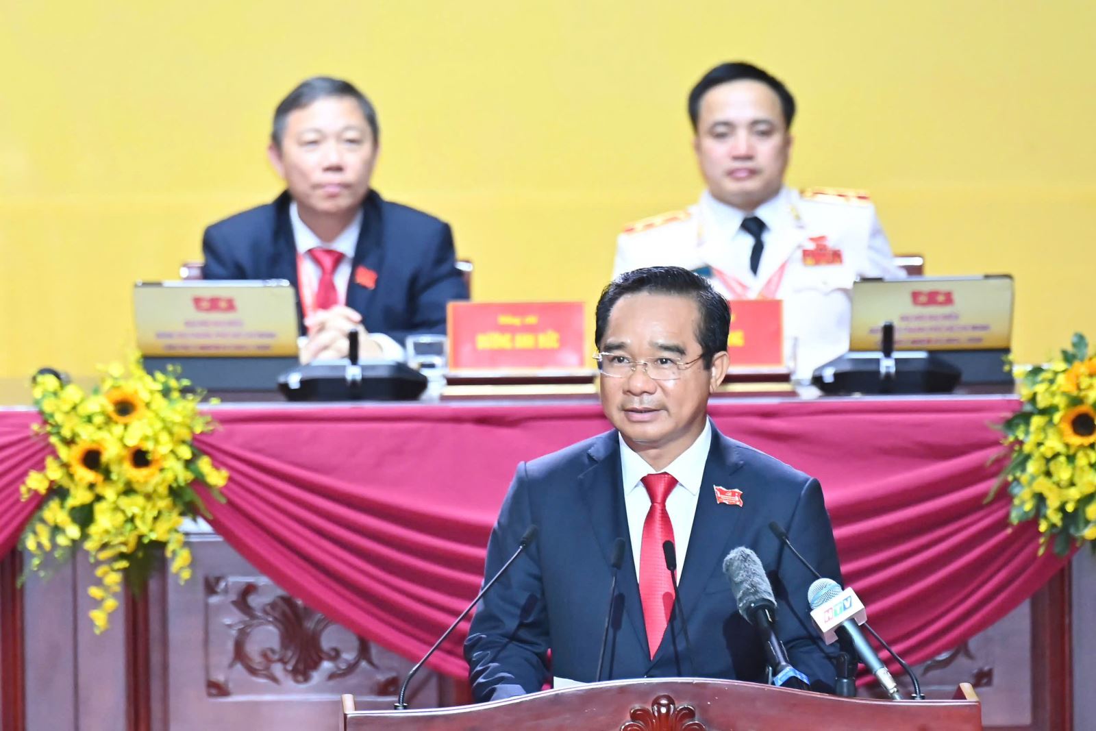 Chủ tịch UBND Thành phố Nguyễn Văn Được trình bày tóm tắt Báo cáo chính trị