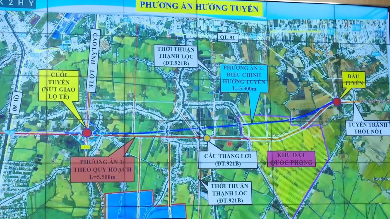 Tại cuộc họp, đại diện Ban quản lý báo cáo về Dự án Quốc lộ 91 (từ tuyến tránh Thốt Nốt đến nút giao Lộ Tẻ - Rạch Sỏi) với tổng chiều dài nghiên cứu khoảng 5,3km; điểm đầu tại nút giao nối tuyến tránh Thốt Nốt, điểm cuối tại nút giao Lộ Tẻ - Rạch Sỏi. Trong đó, đoạn qua địa bàn phường Thốt Nốt dài khoảng 4,3km, đi qua khu vực đồng ruộng và đã được điều chỉnh cục bộ để đảm bảo tính khả thi về kỹ thuật và kinh tế; phương án tuyến đi qua bốn kênh hiện hữu và dự kiến xây dựng bốn cầu ngang; đoạn cuối tuyến thuộc địa phận xã Vĩnh Trinh dài khoảng 1km chủ yếu phục vụ hoàn chỉnh phạm vi nút giao, kết nối với cao tốc Lộ Tẻ - Rạch Sỏi thông qua các nhánh, cầu vượt.