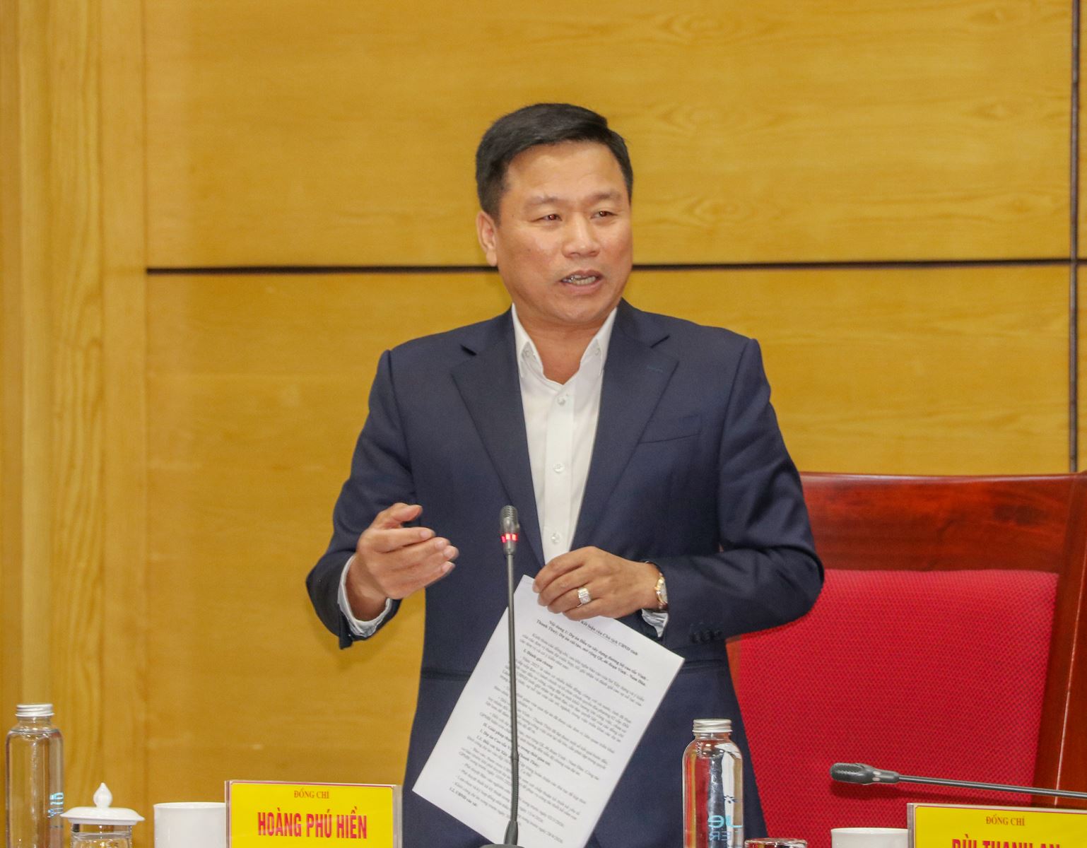 Phó Chủ tịch UBND tỉnh Hoàng Phú Hiền phát biểu tại cuộc họp.
